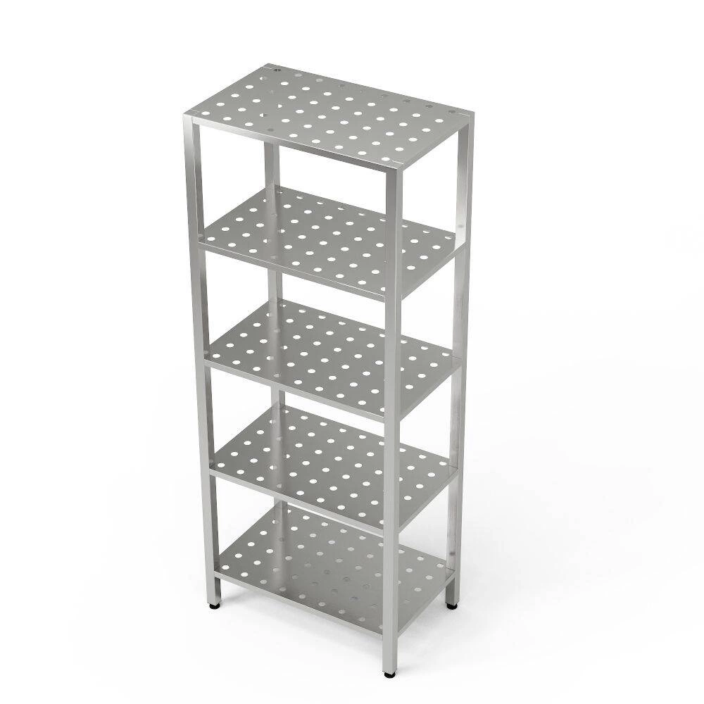 Nerezový regál s 5 perforovanými policemi 100x70x200 cm FORGAST je pevný a funkční skladový nábytek určený pro intenzivní používání v gastronomii, hotelnictví a všude tam, kde jsou vyžadovány vysoké hygienické standardy. Produkt se vyznačuje provedením z odolné nerezové oceli a přítomností roštových polic, které usnadňují cirkulaci vzduchu a udržování čistoty. Tento regál se skvěle hodí do profesionálních kuchyní, chladíren, laboratoří nebo potravinářských skladů.