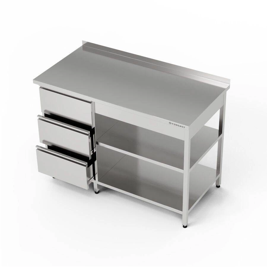 Nerezový pracovní stůl s blokem zásuvek a dvěma policemi 100x60x85 cm | FORGAST |