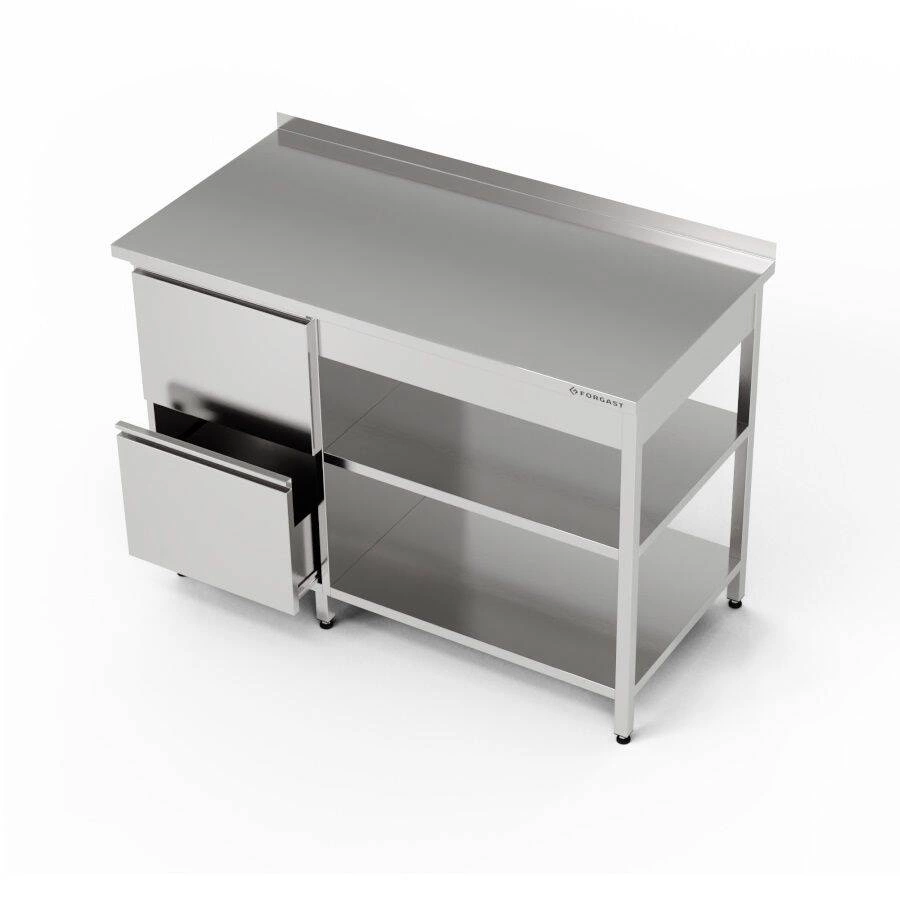 Nerezový pracovní stůl s blokem zásuvek a dvěma policemi 160x60x85 cm | FORGAST |