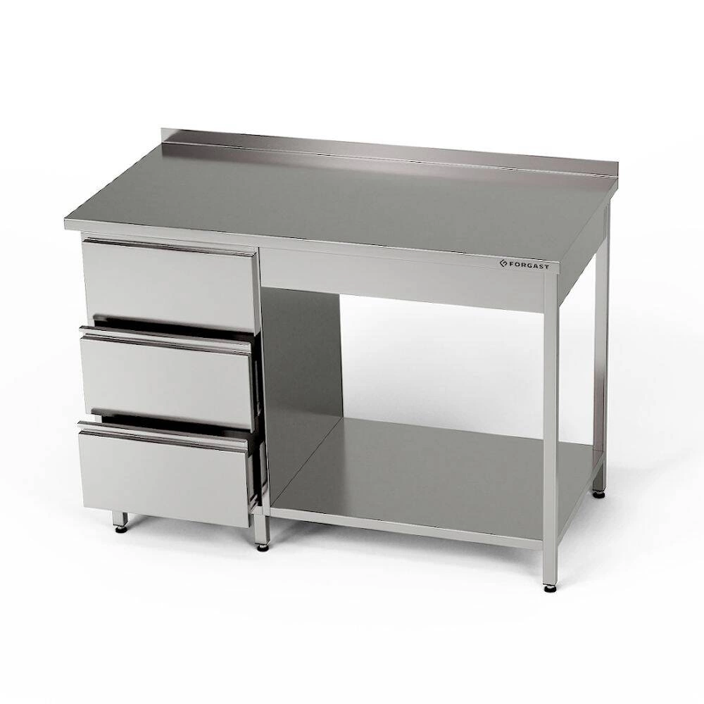 Nerezový pracovní stůl s blokem zásuvek a policí 190x60x85 cm | FORGAST