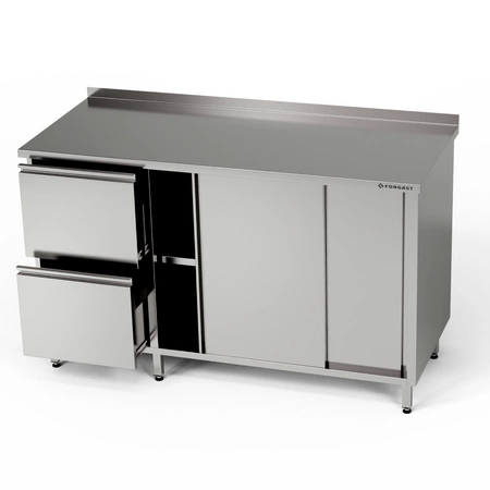 | Nerezový pracovní stůl se skříňkou a blokem zásuvek 210x60x85 cm | FORGAST |