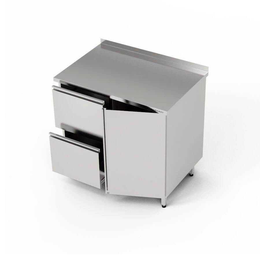Pracovní stanice o rozměrech 100x70x85 cm s blokem 2 zásuvek a skříňkou s otevíracími dvířky. Uvnitř skříně je pólavice. Skříňka je umístěna na pravé straně. Rozměry zásuvky v bloku se 2 zásuvkami: 44x46,5x44/18 cm.
