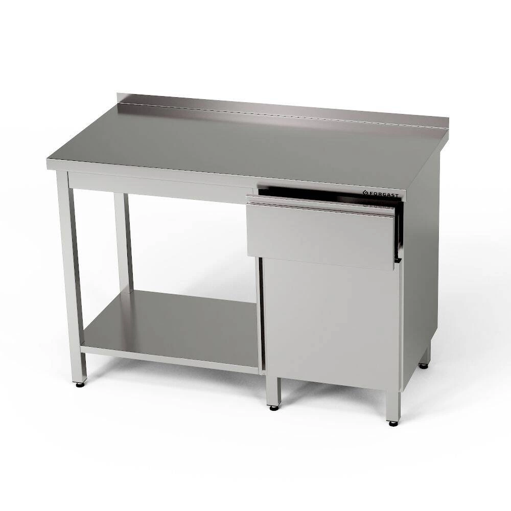 Nerezový pracovní stůl se skříňkou, zásuvkou a policí 130x70x85 cm | FORGAST |