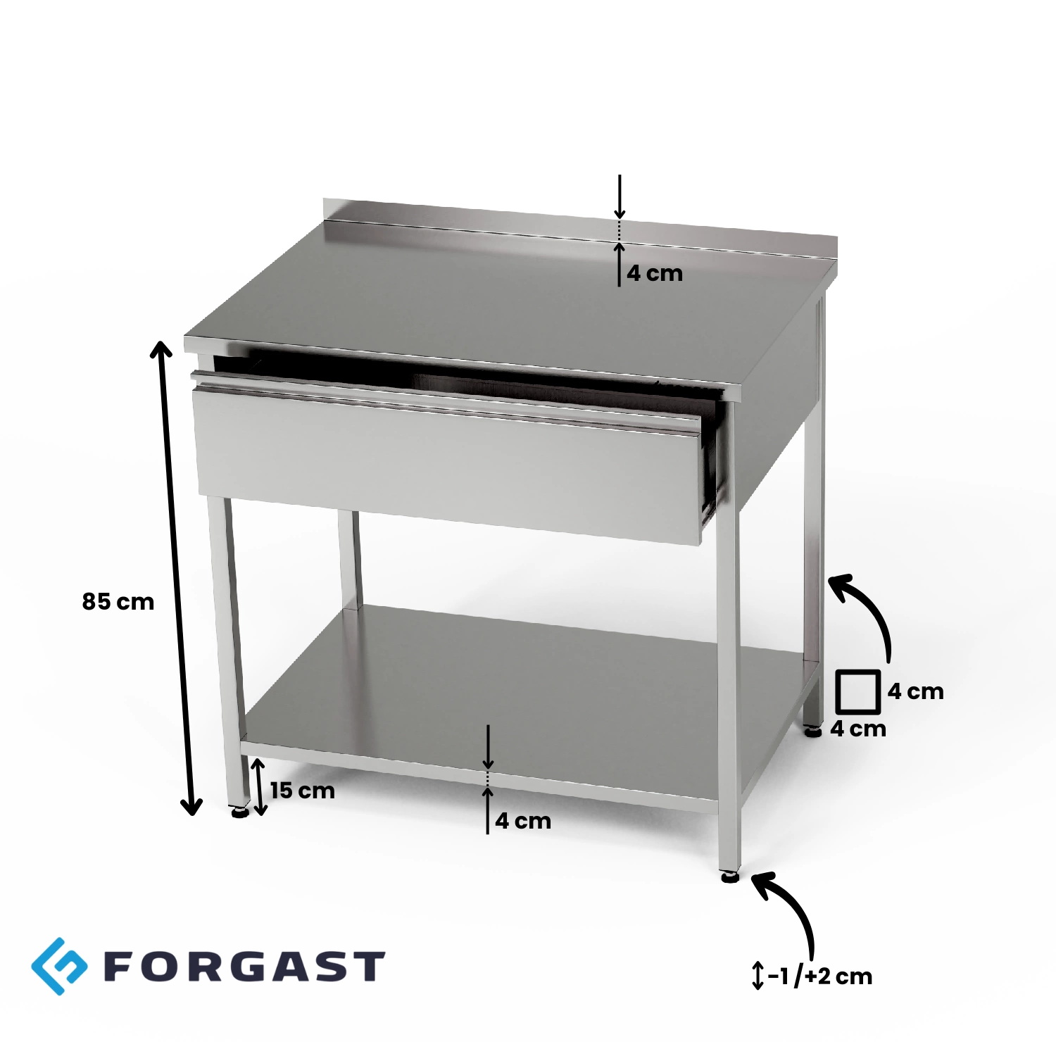 Nerezový pracovní stůl se zásuvkou 70x70x85 cm | FORGAST