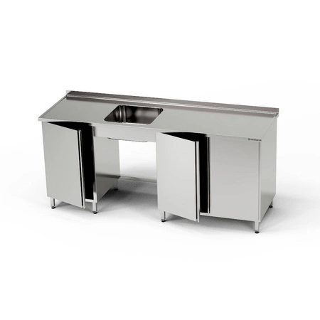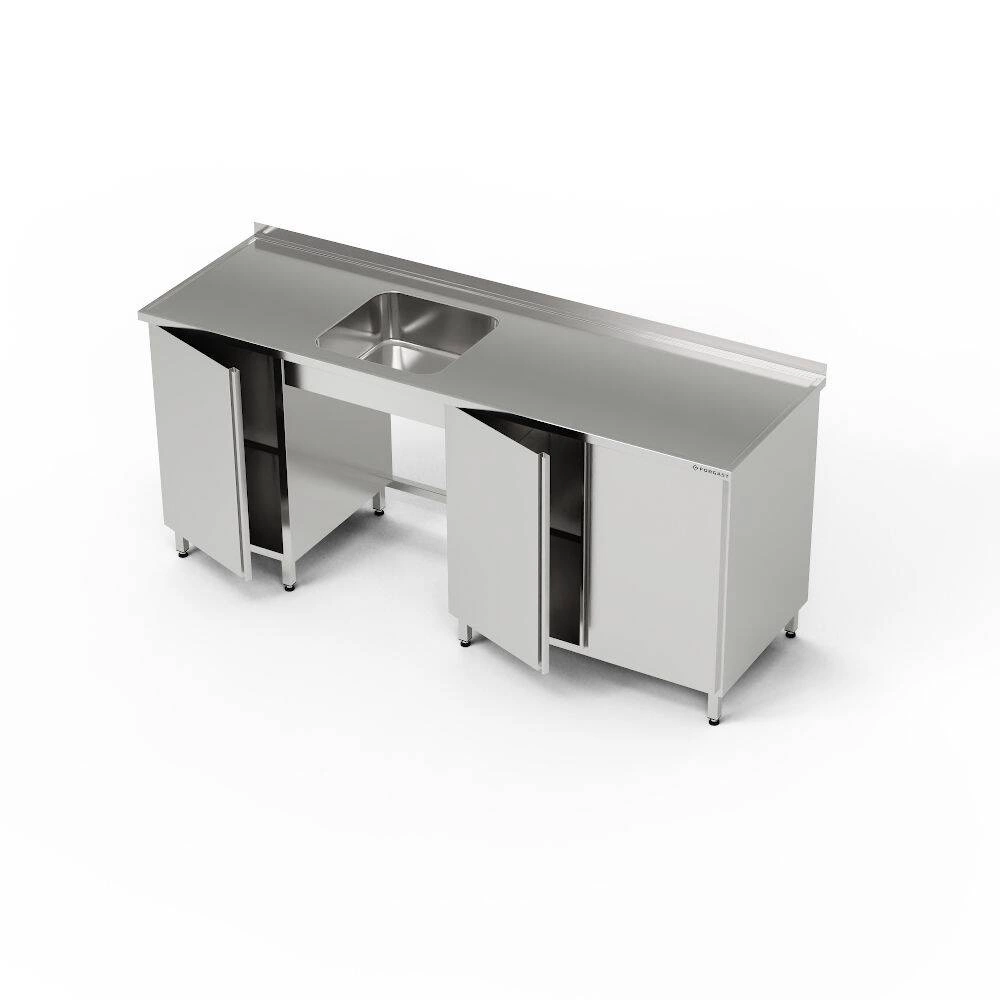 Nerezový stůl s 1 dřezem a 2 skříňkami 180x60x85 cm | FORGAST