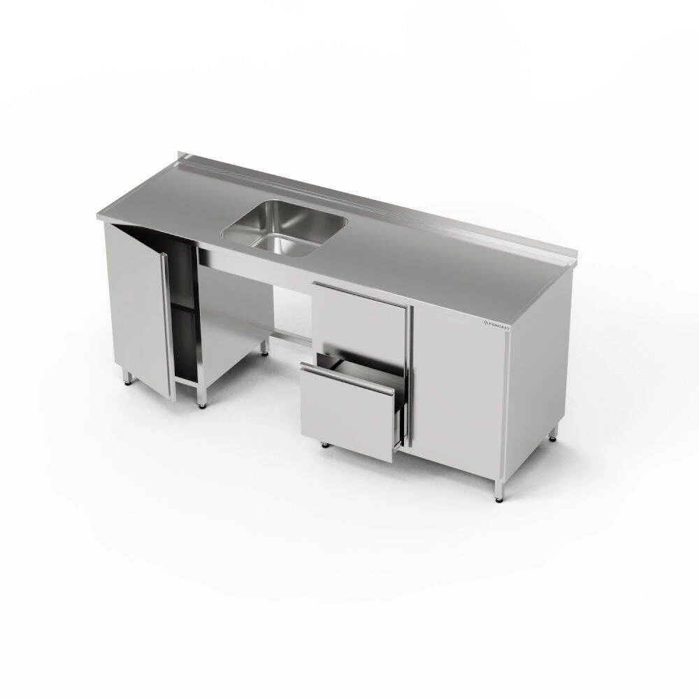 Nerezový stůl s 1-dřezem, skříňkou a blokem zásuvek a skříňkou 260x60x85 cm FORGAST