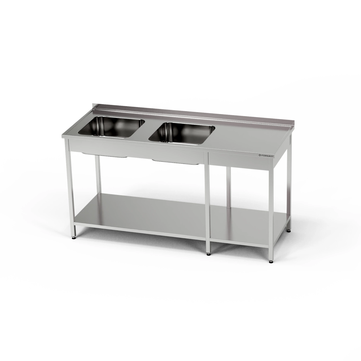 Nerezový stůl s dvoukomorovým dřezem 180x70x85 cm FORGAST