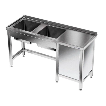 Nerezový stůl s dvoukomorovým dřezem 190x70x85 cm FORGAST