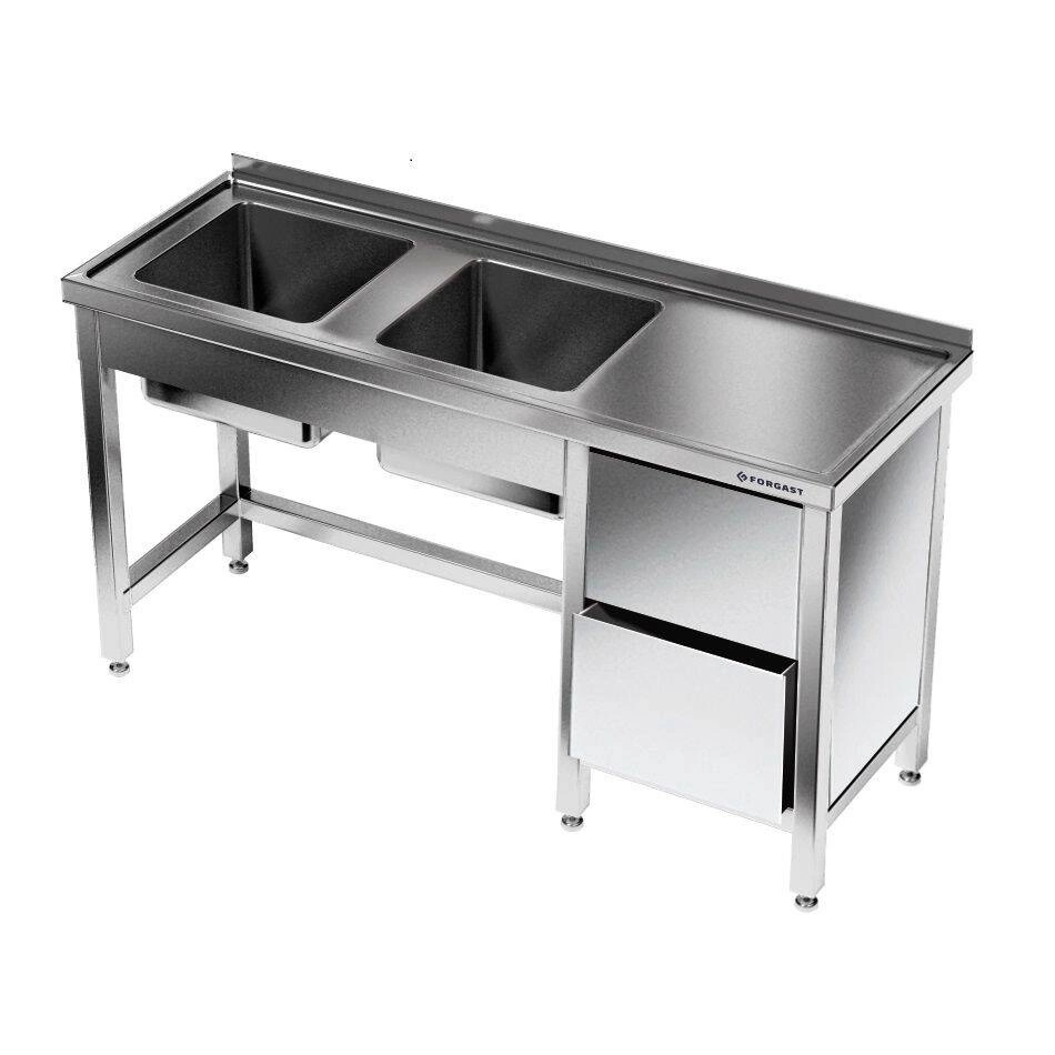 Nerezový stůl s dvoukomorovým dřezem FORGAST je profesionální kuchyňský nábytek určený pro intenzivní používání v gastronomii, jídelnách, restauracích a potravinářských provozech. Vyniká odolnou konstrukcí z nerezové oceli, dvěma praktickými komorami dřezu a blokem zásuvek, což z něj činí ideální řešení pro mytí nádobí, přípravu potravin a organizaci práce v kuchyni.