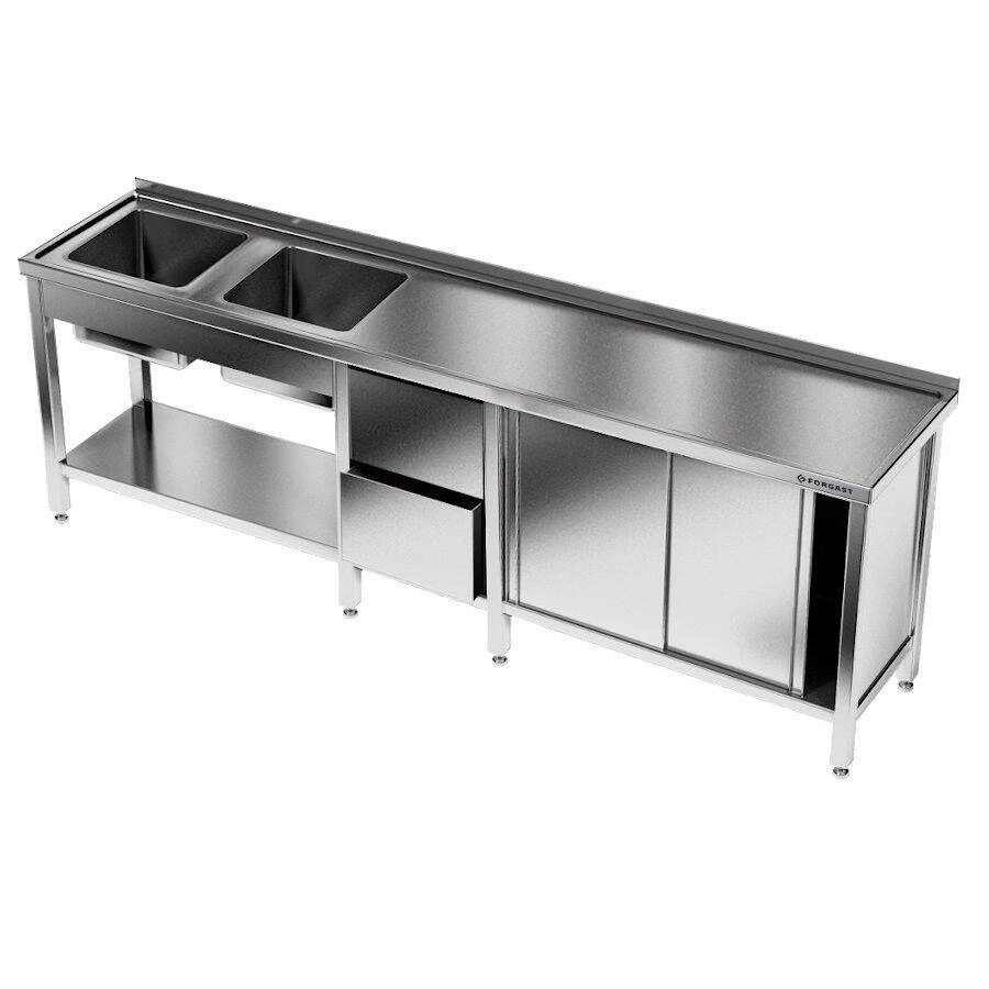 Nerezový stůl s dvoukomorovým dřezem 250x70x85 cm FORGAST