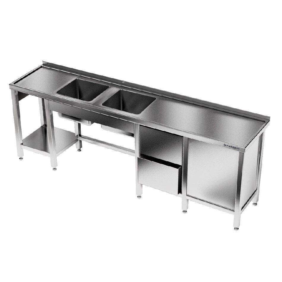 Nerezový stůl s dvoukomorovým dřezem 280x70x85 cm | FORGAST