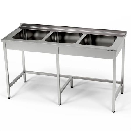 Nerezový stůl s tříkomorovým dřezem 150x70x85 cm FORGAST