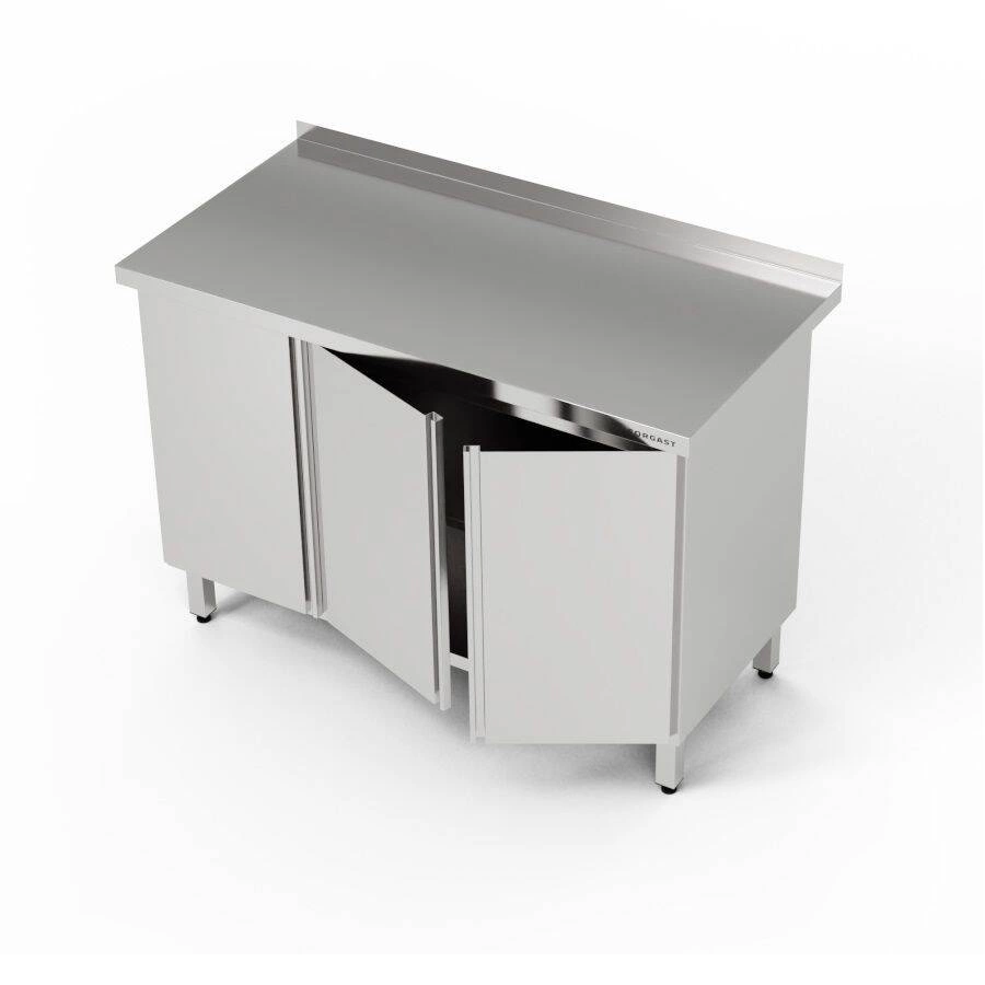 Třídveřový pracovní stůl se skříňkou;o rozměrech 170x70x85 cm z nerezové oceli J4. Otevírací dveře. Společný prostor, jedny dveře jsou umístěny na levé nebo pravé straně. Ve skříni jsou półki.
