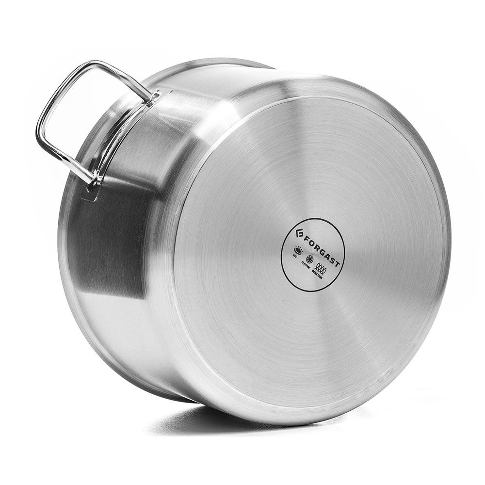 Hrnec je vyroben z vysoce kvalitní nerezové oceli, což zajišťuje odolnost a ochranu proti korozi i při intenzivním používání. Stěny mají tloušťku 1 mm, díky čemuž je nádoba stabilní, ale zároveň není příliš těžká pro každodenní manipulaci. Vícevrstvé sendvičové dno zaručuje rychlé zahřívání a udržení teploty, což ovlivňuje kvalitu připravovaných pokrmů.