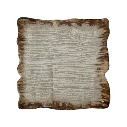 Hranatý mělký talíř Moku dolomit 30 x 30 cm KERA CERAMIKA 16.5.DOLOMIT je originální nádobí vytvořené s ohledem na servírování jídel v asijském stylu, zejména sushi nebo japonské kuchyně. Vyznačuje se přirozenou, nepravidelnou strukturou připomínající kůru dřeva a efektní krystalickou glazurou v odstínech dolomitu. Díky velké ploše a univerzálnímu tvaru se hodí jak pro každodenní stolování, tak pro výjimečné příležitosti.