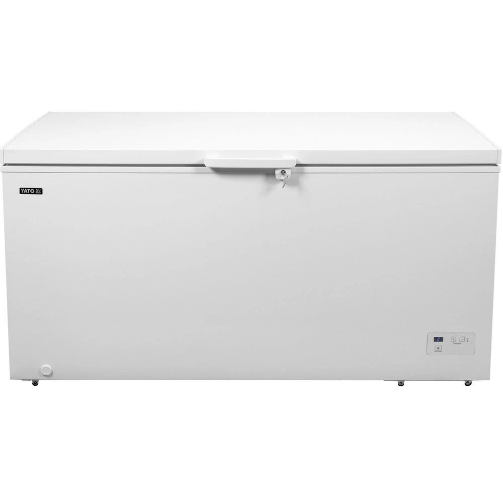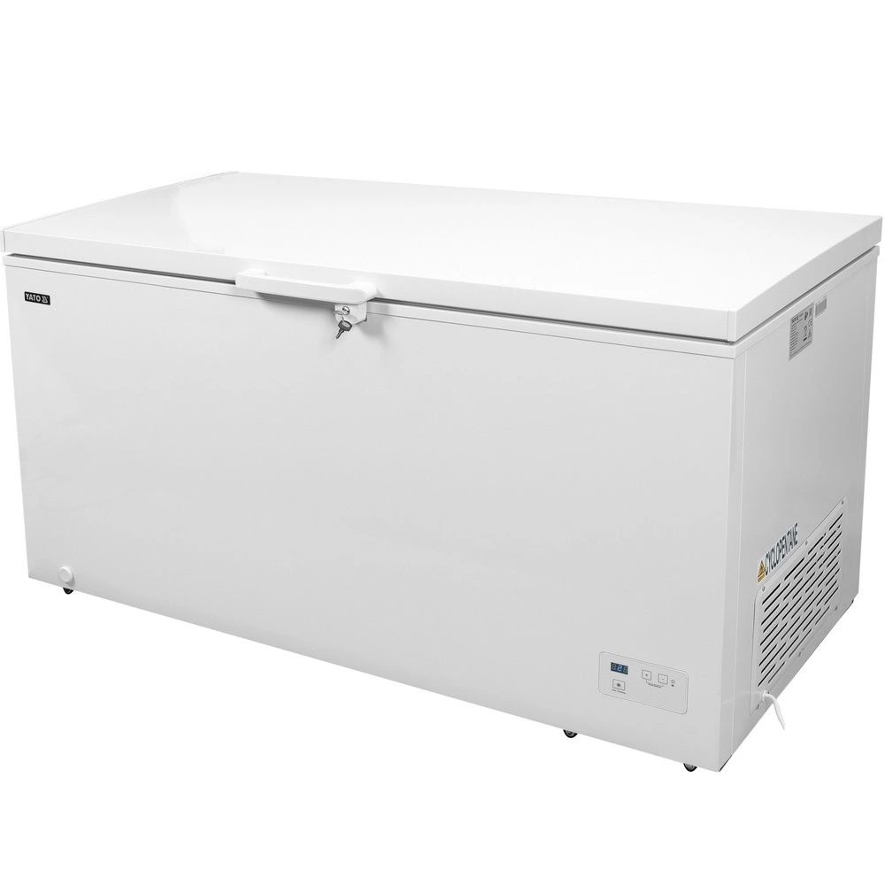 Mraznička YATO s celkovým objemem 435 l. Je určena pro skladování potravin při teplotách od 10 stupňů C do -24 stupňů C. Samouzavírací výklopná dvířka se zámkem zajišťují snadný přístup k obsahu a zároveň udržují stálou teplotu uvnitř, což je nezbytné pro zachování čerstvosti produktů. Zámek zaručuje bezpečnost uložených výrobkůós. Jednotka je vybavena elektronickým ovládáním s digitálním displejem, které umožňuje přesnou kontrolu a přizpůsobení skladovacích podmínek konkrétní potřebě.