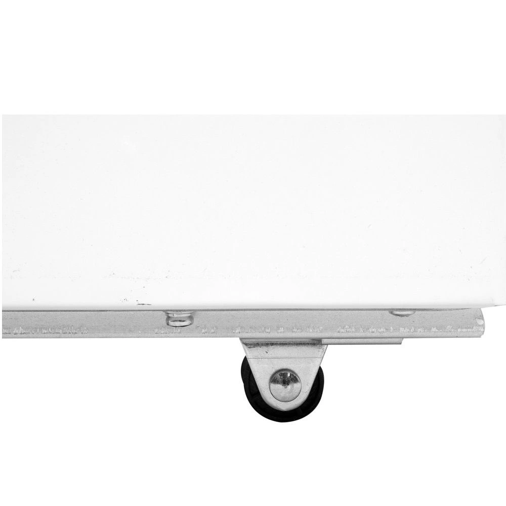 Použitá funkce automatického odmrazování eliminuje nutnost ručního ovládání, zvyšuje pohodlí a minimalizuje riziko hromadění ledu. Vyrobeno z hliníkového plechu perforovaného na vnitřní straně, což zaručuje rovnoměrné rozložení chladu, zatímco práškově lakovaná ocel na vnější straně zajišťuje odolnost a snadné čištění. Mraznička je vybavena 6 cókami, které usnadňují její přesun a rovnoměrné umístění na různých površích. Výškově nastavitelné nožičky o výšce 35 mm jsou vyrobeny z pevného PP (polypropylenu), což zajišťuje stabilitu a odolnost vůči okolním podmínkám.