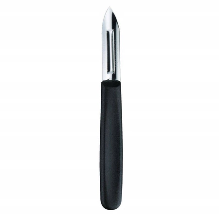 Oboustranná škrabka od společnosti Victorinox. Určeno k loupání brambor a další zeleniny. Díky robustní čepeli z nerezové oceli s hladkým ostřím si loupač snadno poradí i s tvrdou a hrubou slupkou zeleniny a ovoce. Má dvojitouóng čepel, takže je vhodný pro praváky i leváky. Černá rukojeť je vyrobena z bezpečného polypropylenu. Škrabku lze mýt v myčce nádobí.