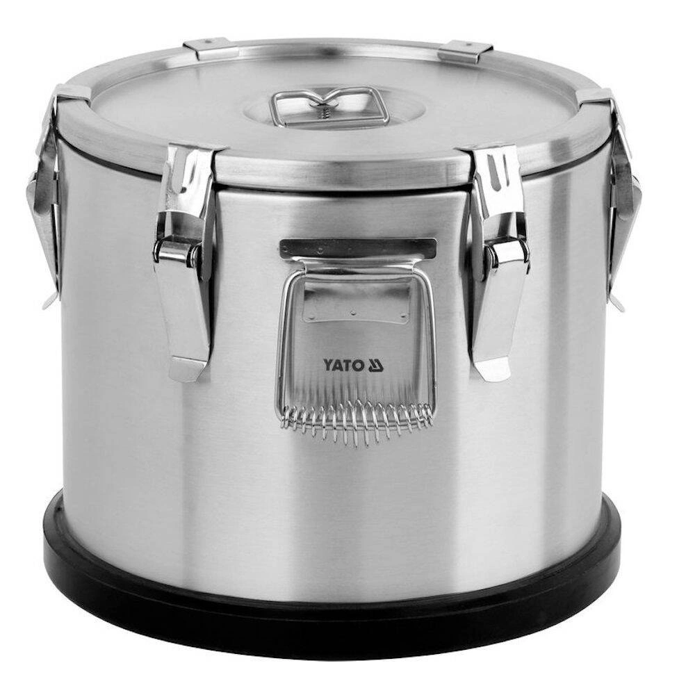 Termos na přepravu potravin značky YATO o objemu 15 l. Plášť i vnitřek jsou vyrobeny z vysoce kvalitní nerezové oceli. Velmi dobrá tepelná izolace díky prostoru mezi stěnami vyplněnému speciálním izolačním materiálem. Ztráta tepla u horkých pokrmů činí pouze 5 °C během 4 hodin, v případě studeného obsahu teplota stoupne o 3 °C.
