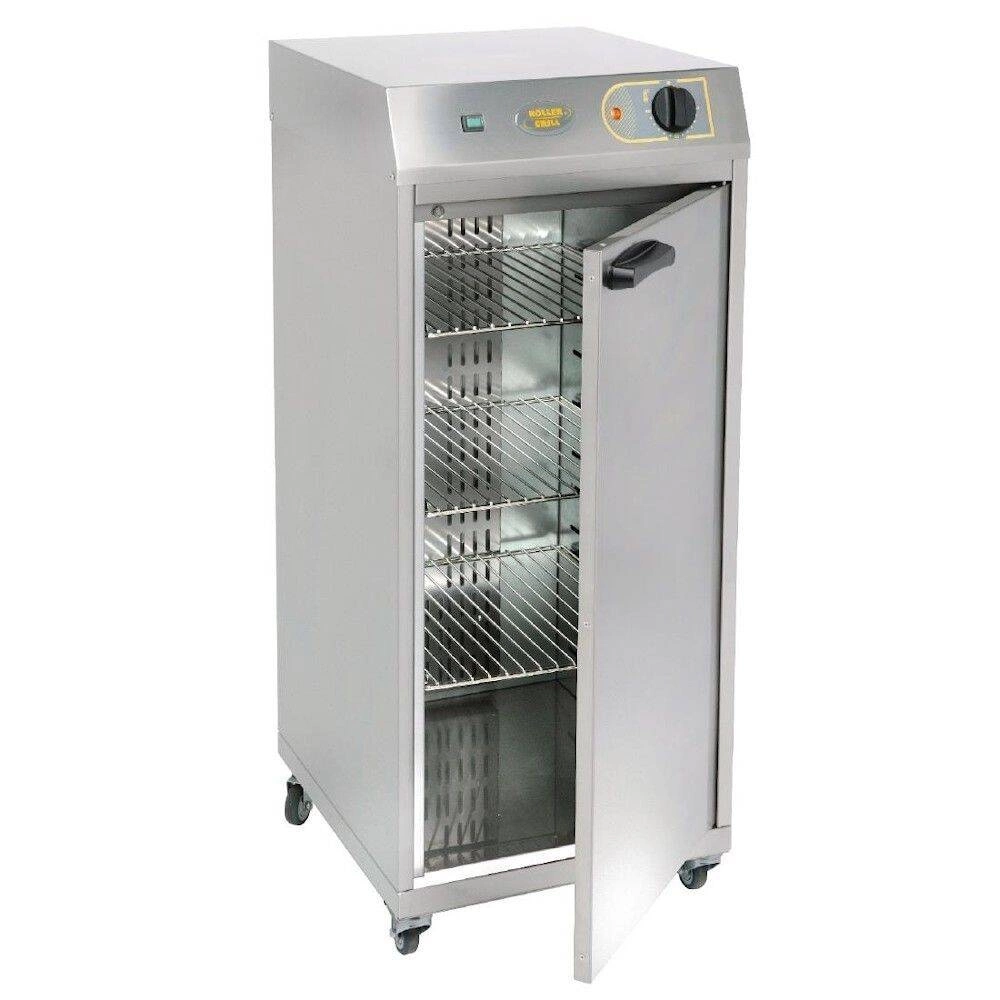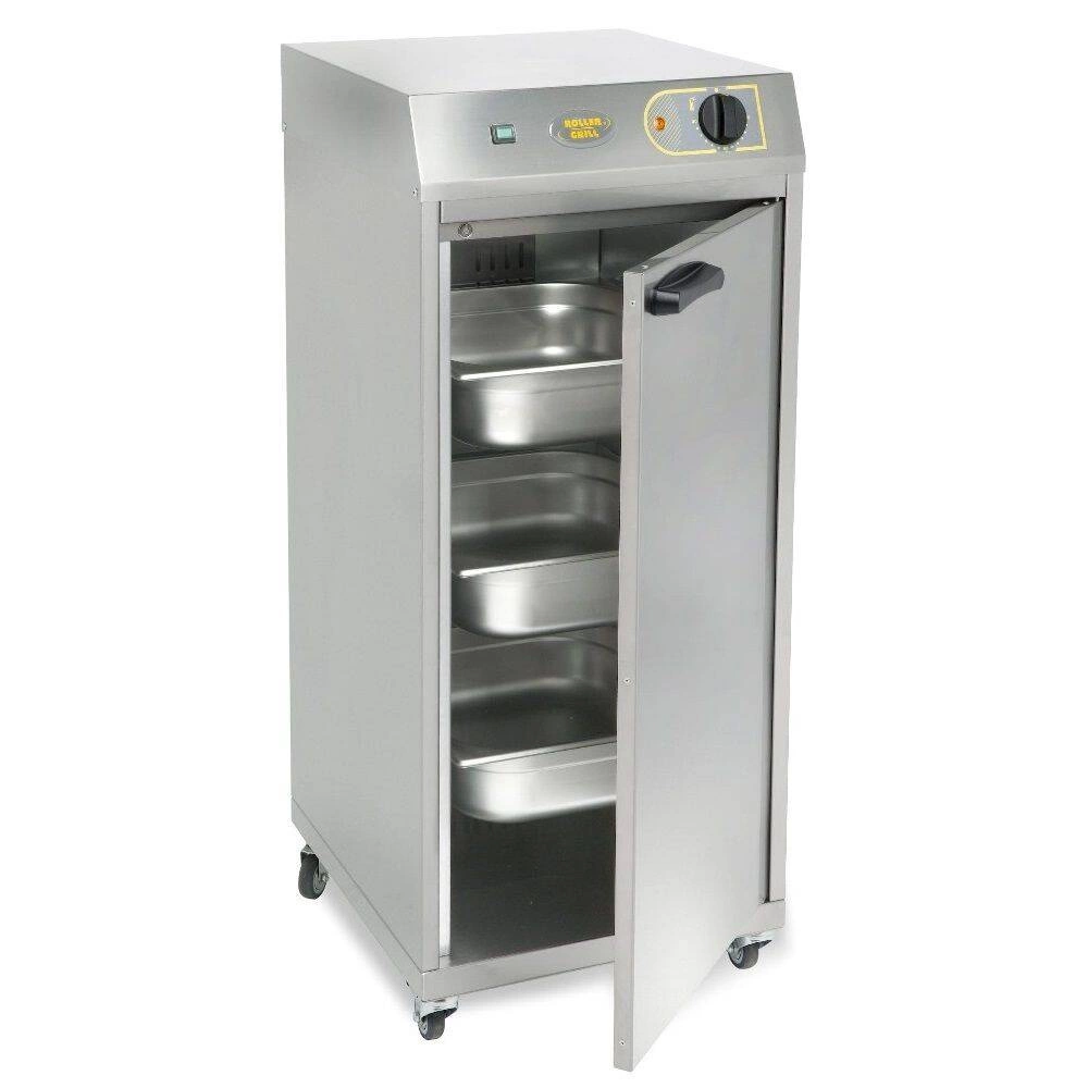 Ohřívač pro talíře a GN nádobyóby Roller Grill. Je určena k ohřevu hotových pokrmů na talířích nebo v nádobách GN a k ohřevu talířů před podáváním pokrmů. Vnitřní prostor ohřívače pojme až 60 talířů o průměru 32 cm nebo 3 GN 2/3 nádoby. 3 rošty o rozměrech 69,5x34,5 cm jsou umístěny uvnitř. Ohřívač má podobu skříňky s magneticky uzamykatelnými dvířky. Stěny mají dvojitou izolaci, která zajišťuje delší uchování tepla a snižuje spotřebu energie. Skříň je vyrobena z nerezové oceli. Vnitřní prostor je vybaven nádobou na vodu, která zabraňuje vysychání ohřívaných potravin a ztrátě jejich chuti. Teplotní rozsah spotřebiče je až 130 stupňů C. Na přední straně přístroje se nachází knoflík pro regulaci teploty. Ohřívač má 4 kolečka pro snadnou mobilitu.