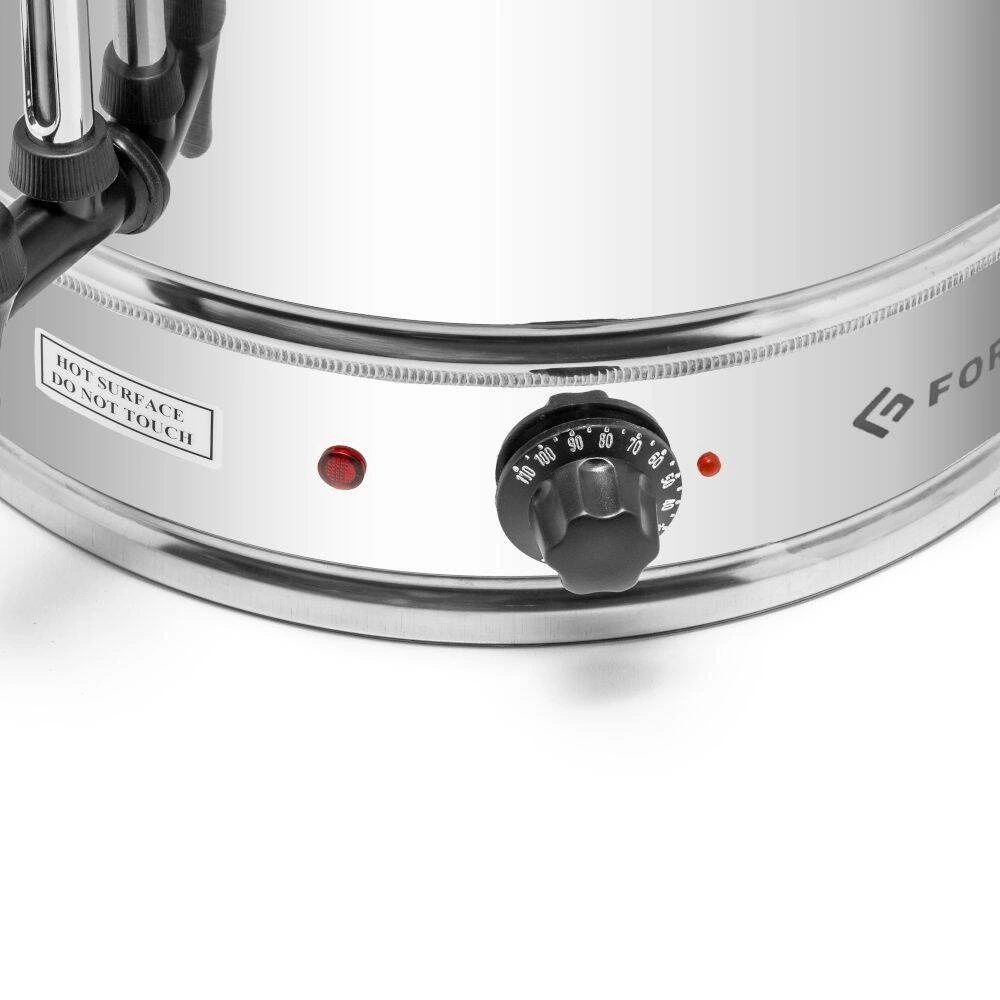 Ohřívač vody Forgast FG05230 je profesionální zařízení určené pro rychlé ohřívání a udržování teploty velkého množství vody. Vyniká objemem 30 litrů a provedením z vysoce leštěné nerezové oceli, což zaručuje odolnost a snadnou údržbu v čistotě. Ideálně se hodí do gastronomie, hotelnictví, během velkých akcí nebo v jídelnách, kde je nutné zajistit stálý přístup k horké vodě.