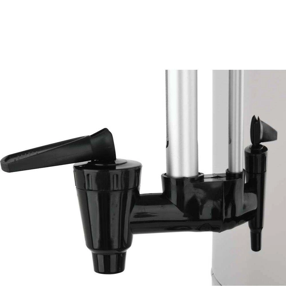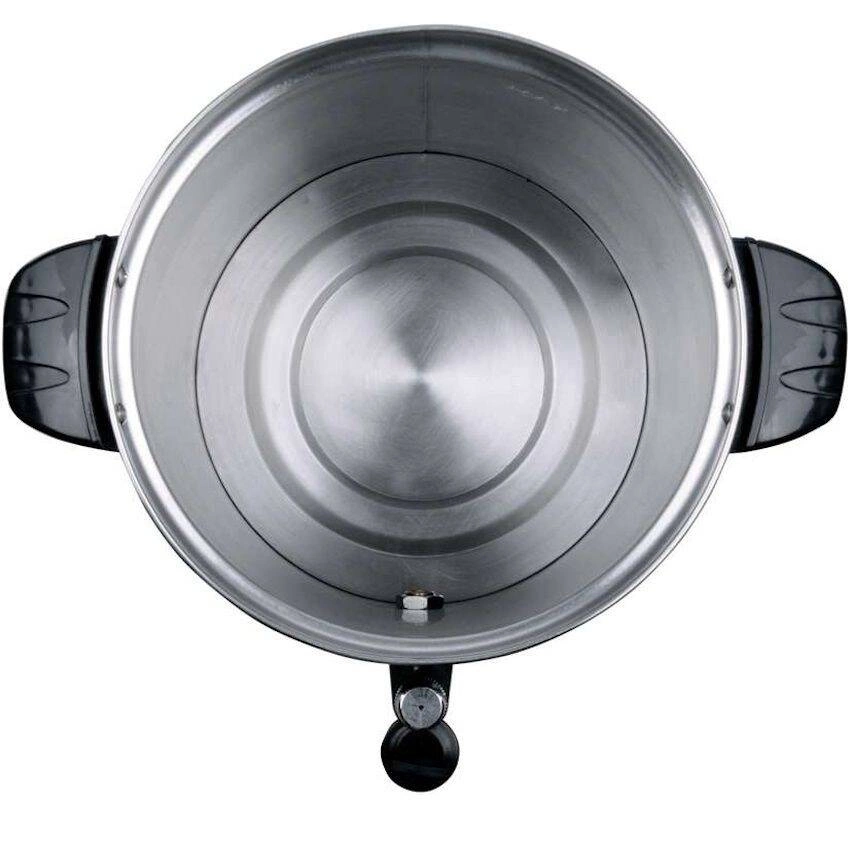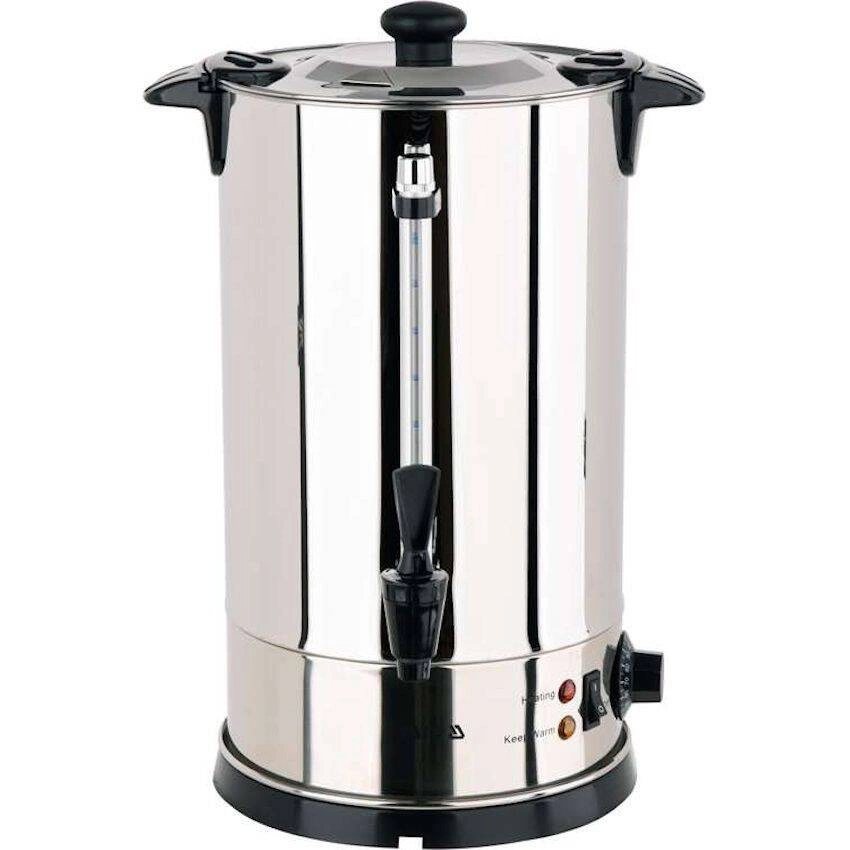 Úpravna vody YATO o objemu 8,8 l Vyrobeno z vysoce leštěné nerezové oceli. Nehřejivé rukojeti z nerezové oceli potažené plastem. Kryté topné těleso. Ochrana proti přehřátí a chodu nasucho.  Teplotní rozsah spotřebiče je 30 až 110 stupňů Celsia. Víko se systémem TWIST-LOCK pro těsné uzavření. V krytu je umístěn ukazatel množství vody. Přístroj je vybaven kohoutkem se systémem proti odkapávání