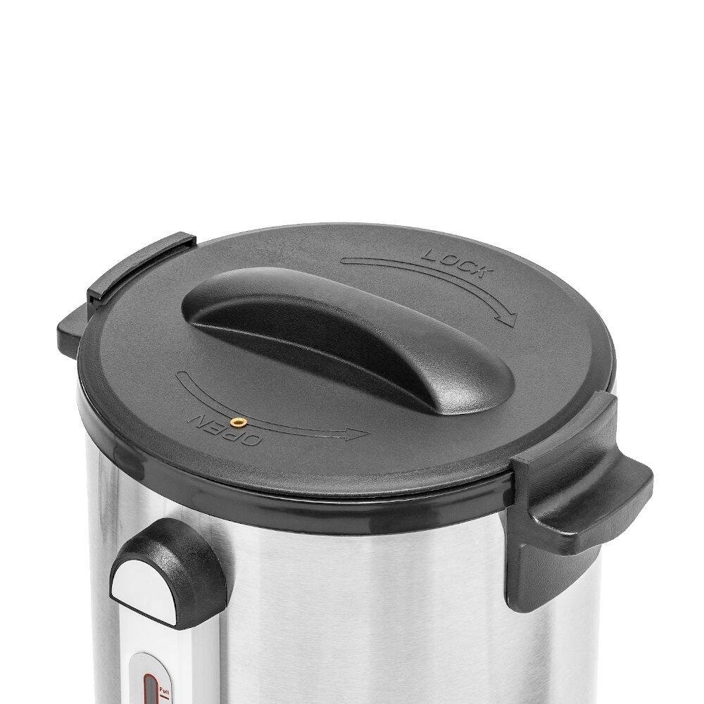 Ohřívač nabízí užitný objem 9 litrů, díky čemuž dokáže obsloužit větší skupiny osob, např. při konferencích, společenských akcích nebo ve firemních jídelnách. Kompaktní průměr 20,5 cm znamená, že zařízení nezabírá mnoho místa na pracovní ploše a zároveň poskytuje dostatečné množství horké vody po delší dobu bez nutnosti častého doplňování.