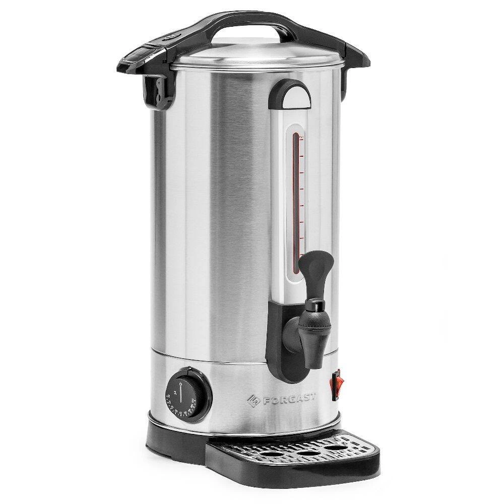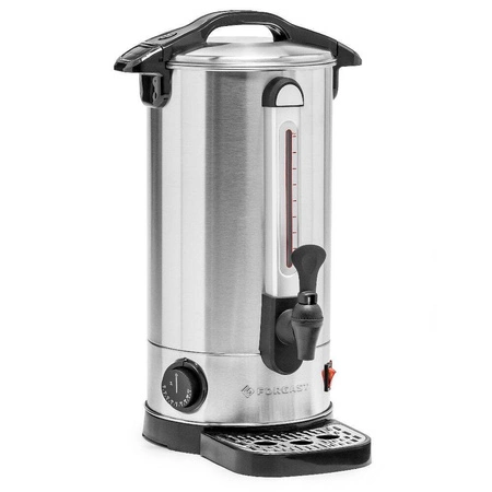 Ohřívač vody 9 l FORGAST FG05557 je profesionální zařízení určené pro rychlý ohřev a udržování teploty vody v gastronomických provozech, hotelech, jídelnách nebo během cateringových akcí. Klíčové vlastnosti tohoto modelu jsou užitný objem 9 litrů a plášť z kvalitní nerezové oceli s matným povrchem, což zajišťuje odolnost a estetický vzhled.