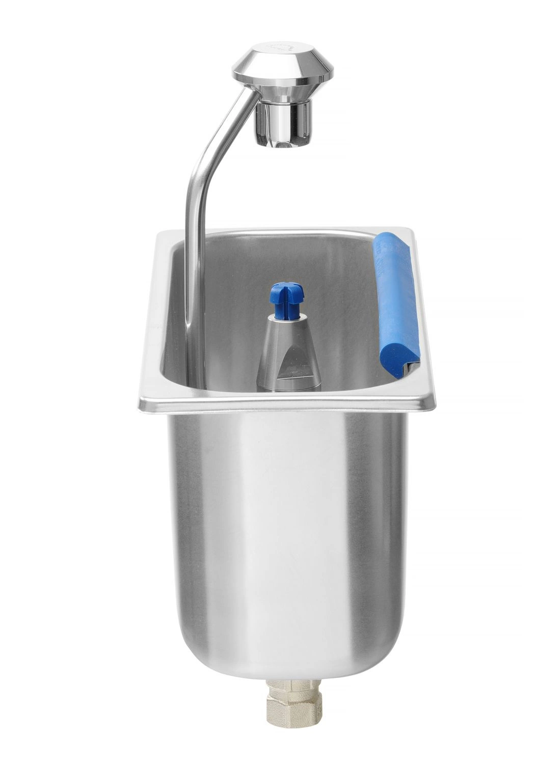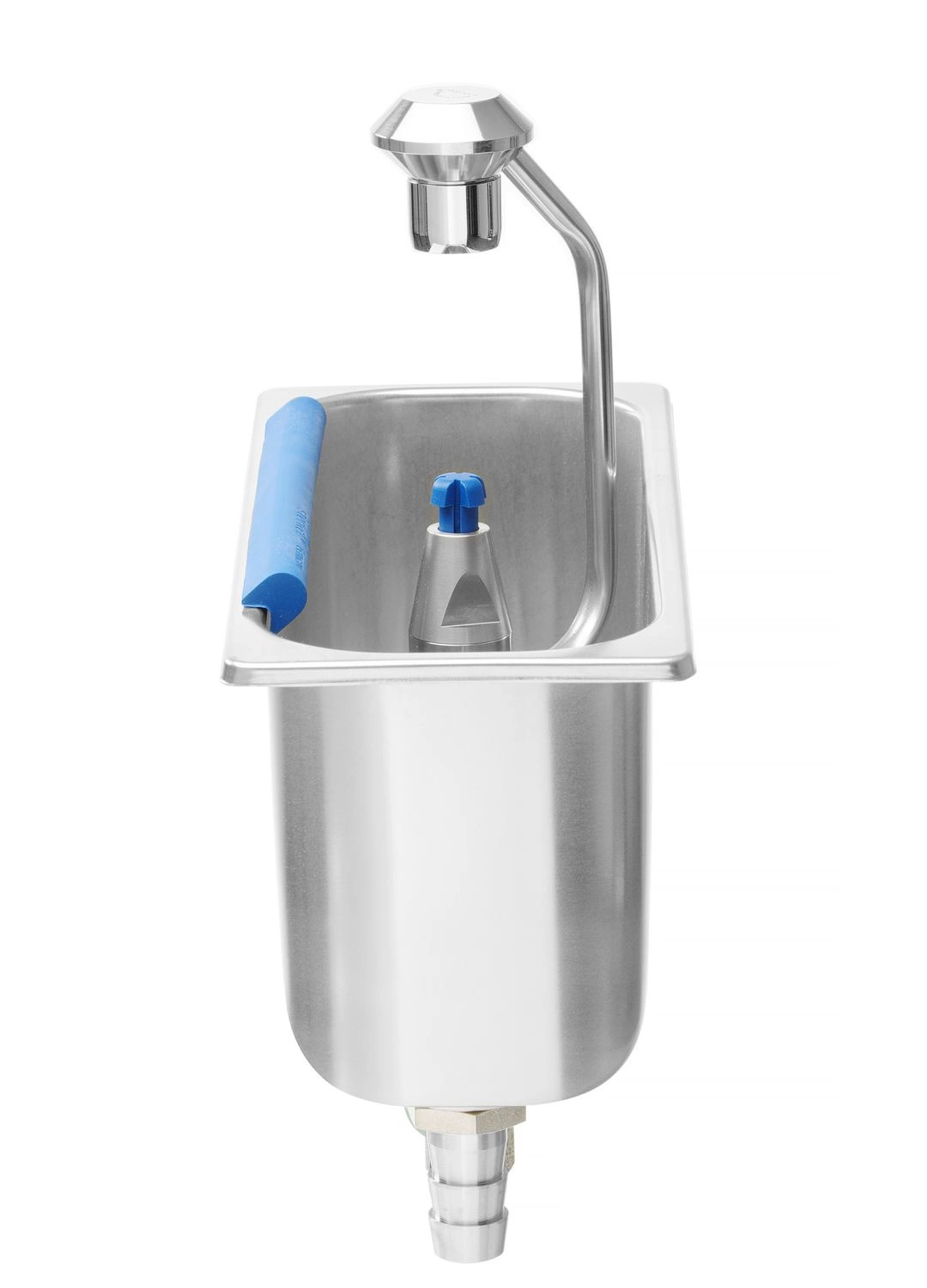 Je vybaven vodovodním kohoutkem. Vyrobeno z nerezové oceli. Přívod vody 3/8quot;, průměr odtoku 20 mm. Kryt z pryže chránící okraj drátěnky před poškozením.