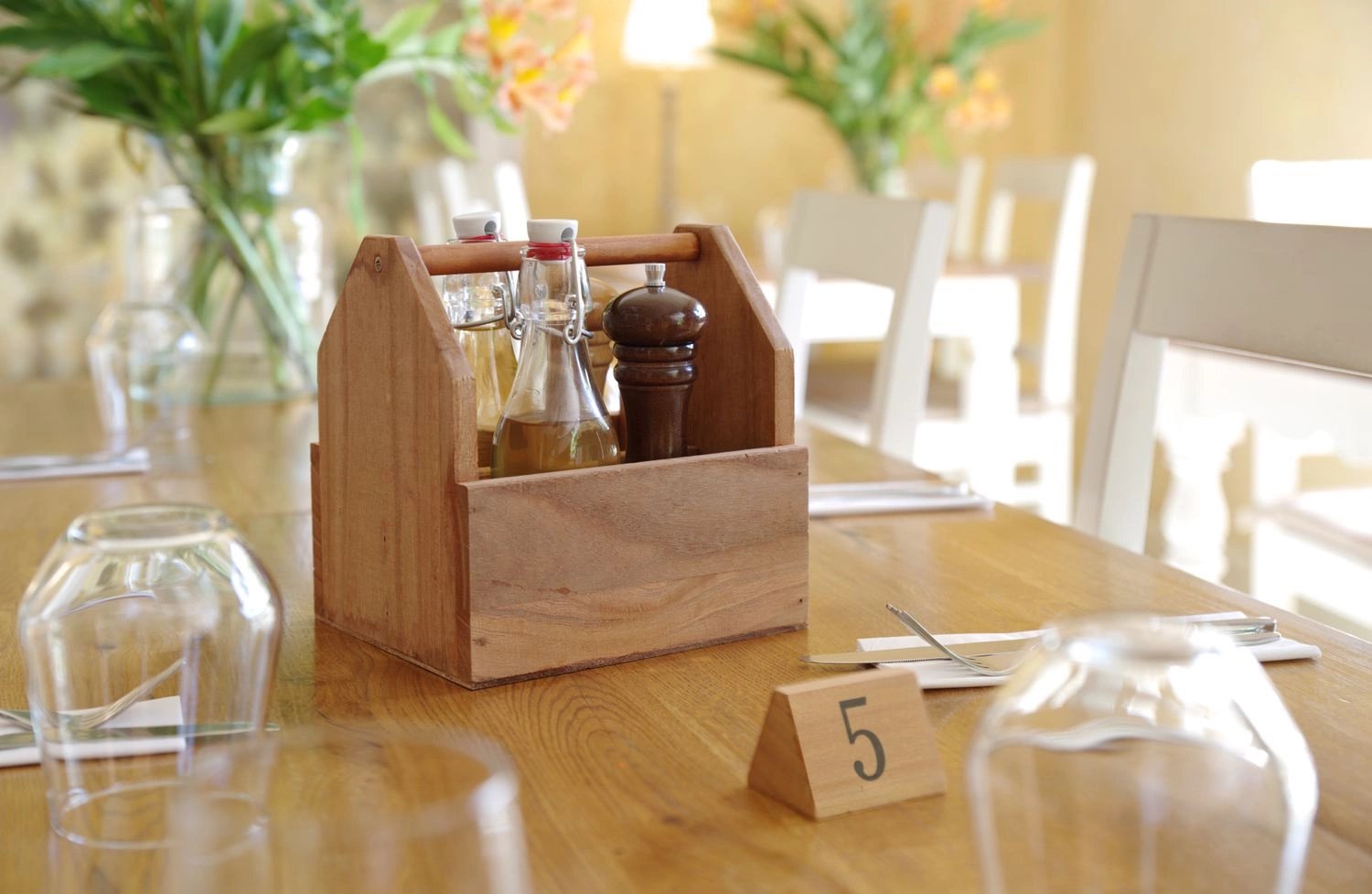 Organizátor stolů Je vybaven 2 přihrádkami a rukojetí. Vyrobeno z odolného dřeva.