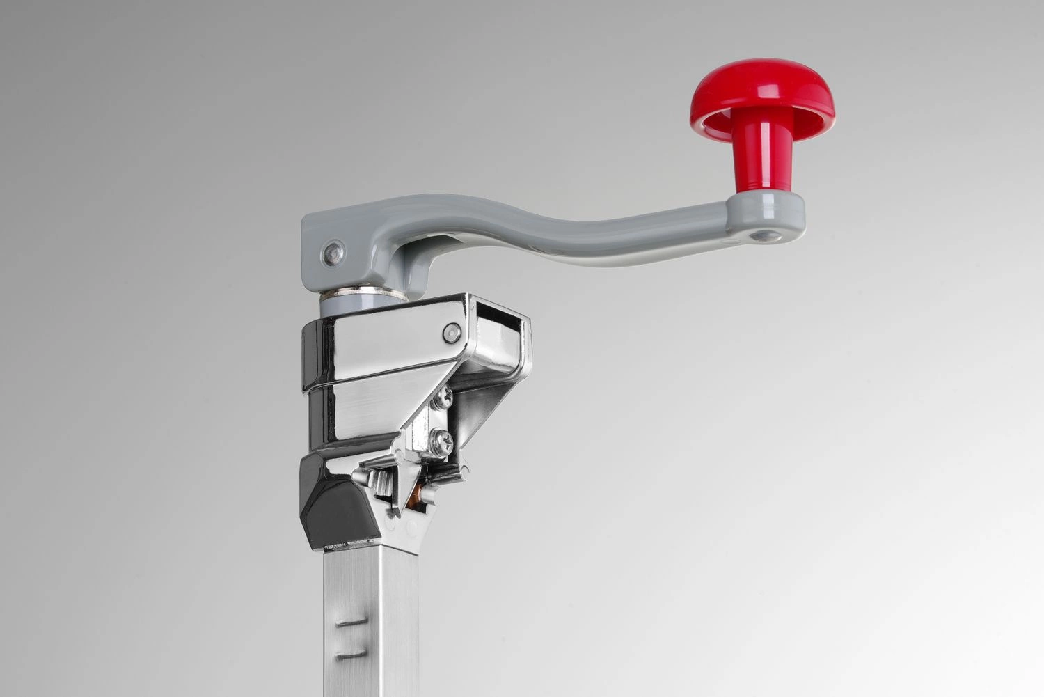 Otevírač pro konzervování. Otevírá konzervy až do výšky 40 cm. Má stolní nástavec.
