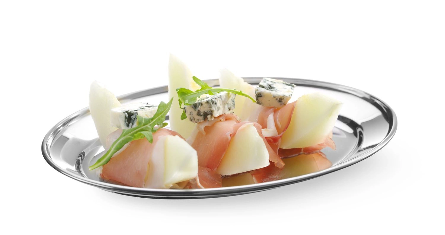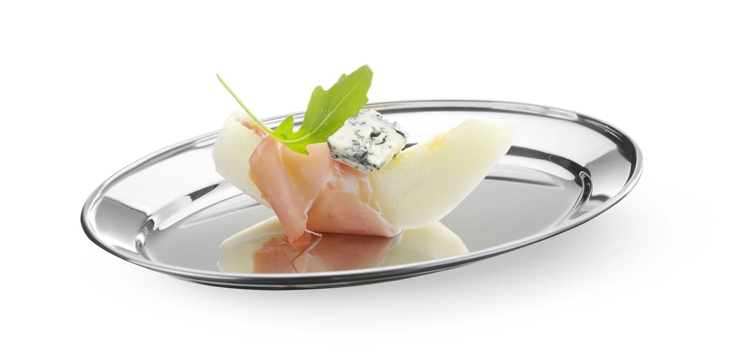 Ocelová mísa oválné pro prezentaci uzenin a masa.