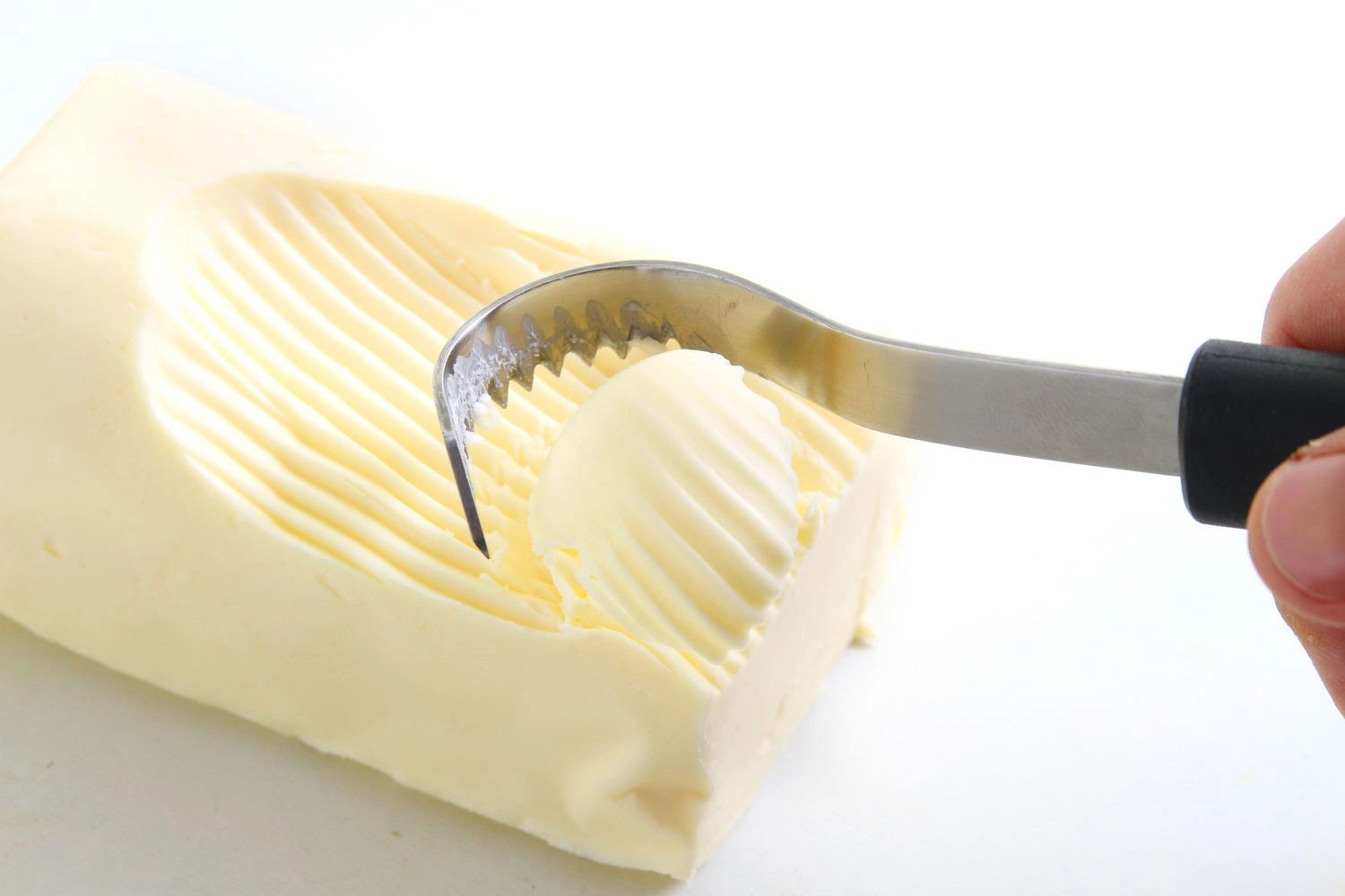Ozdobný nůž na máslo z nerezové oceli. Rukojeť z polypropylenu. Lze mýt v myčce nádobí.