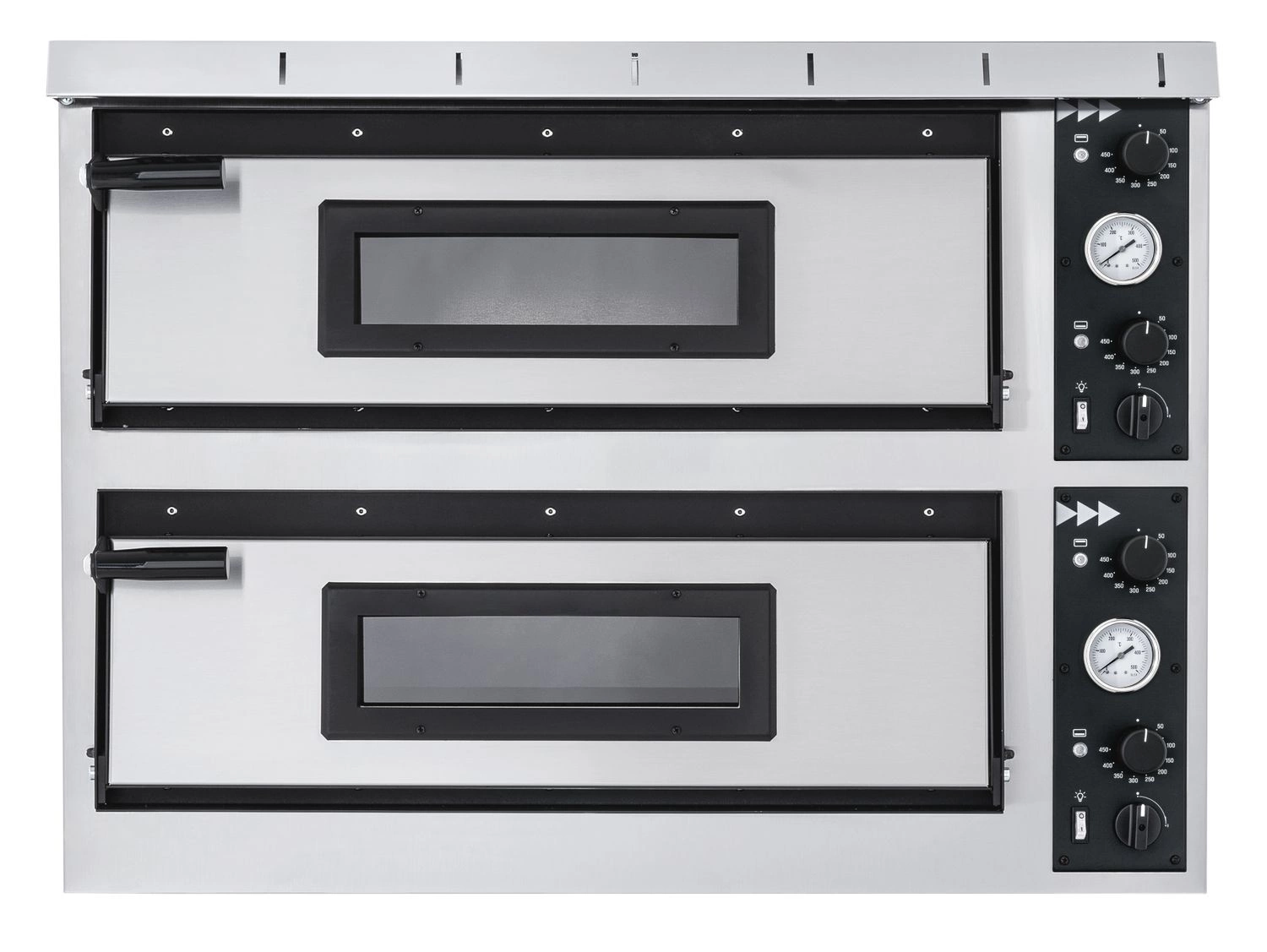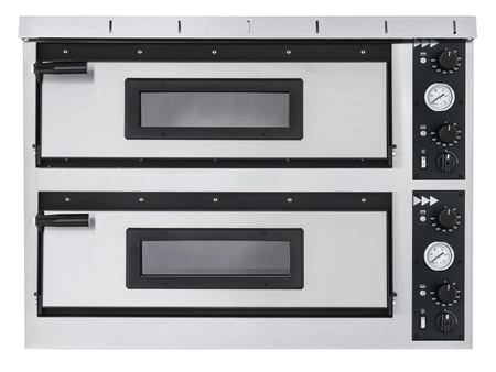 Elektrická dvojitá pec na pizzu XL Plus 44. . Stroj dokáže současně upéct 8 pizz o průměru 35 cm.