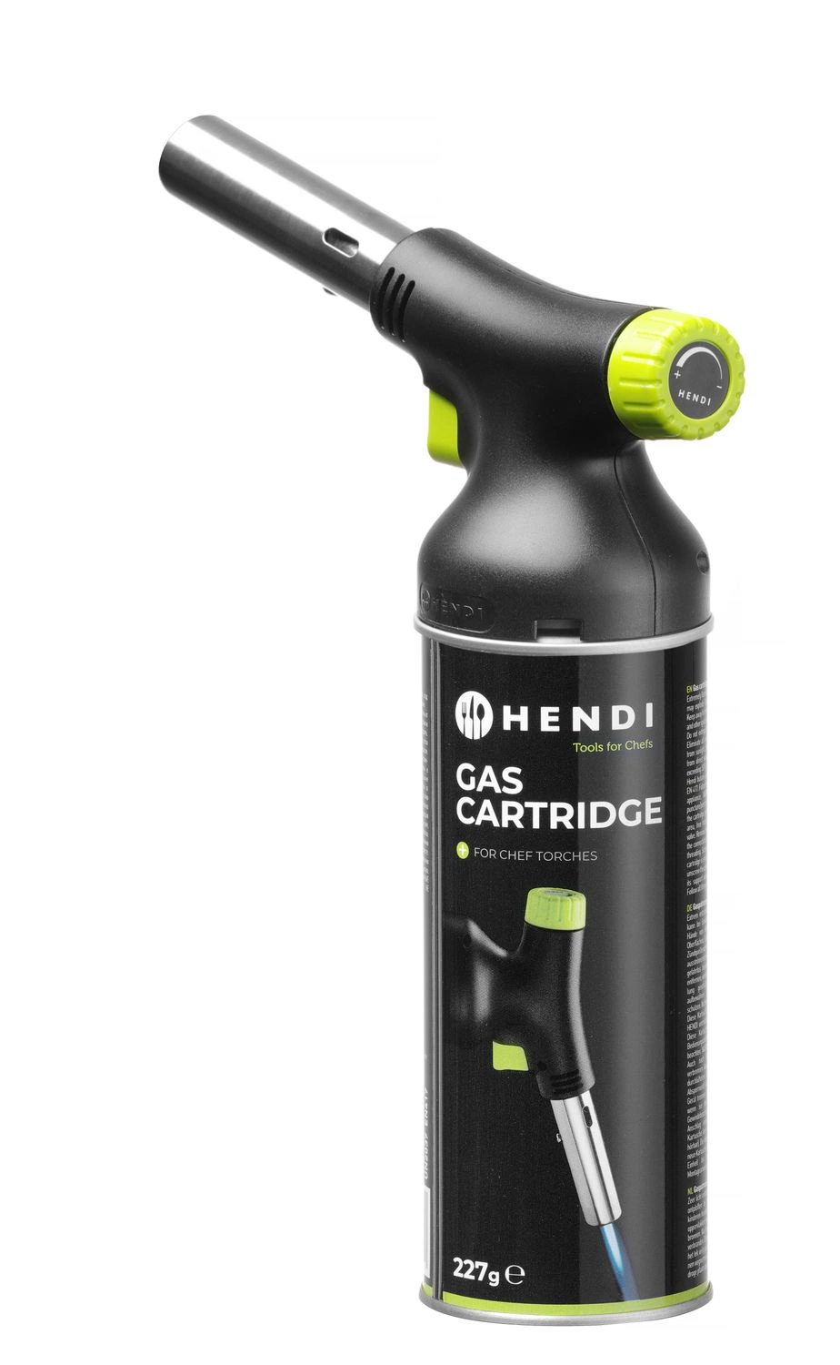 Plynová kartuše pro šéfkuchařský hořák. Pouze pro přenosný plynový vařič (147610) a crème-brûlée hořák (198216). Nepoužívejte k plnění plynových zapalovačů apod.