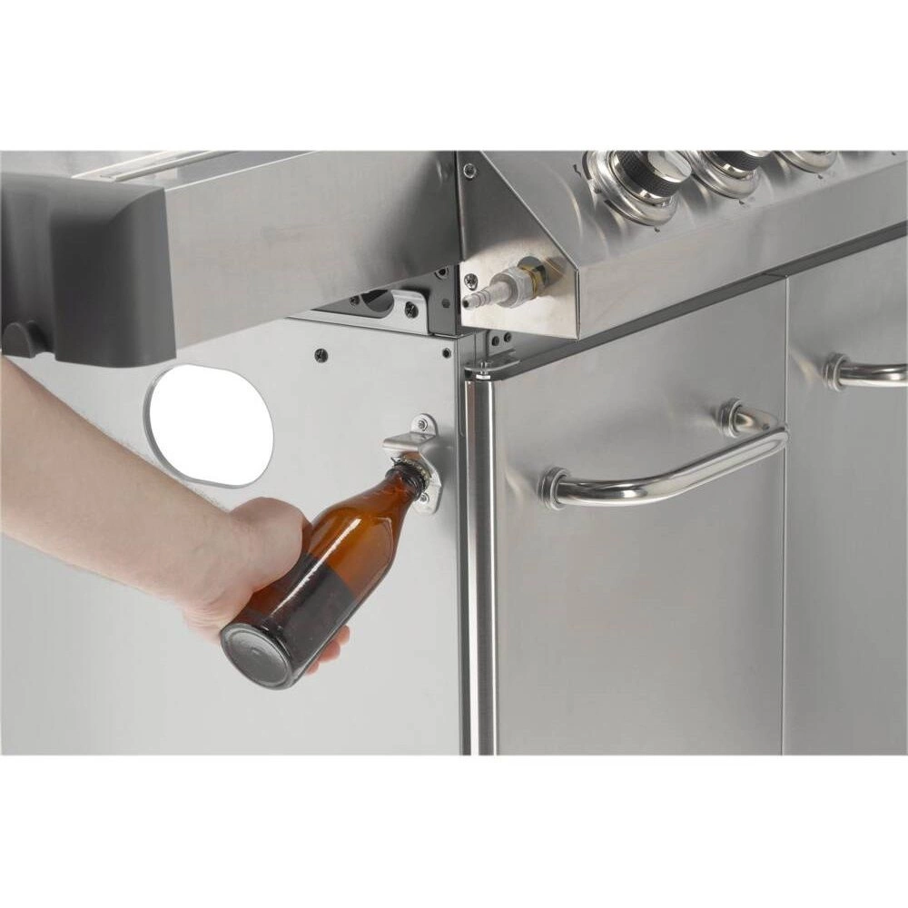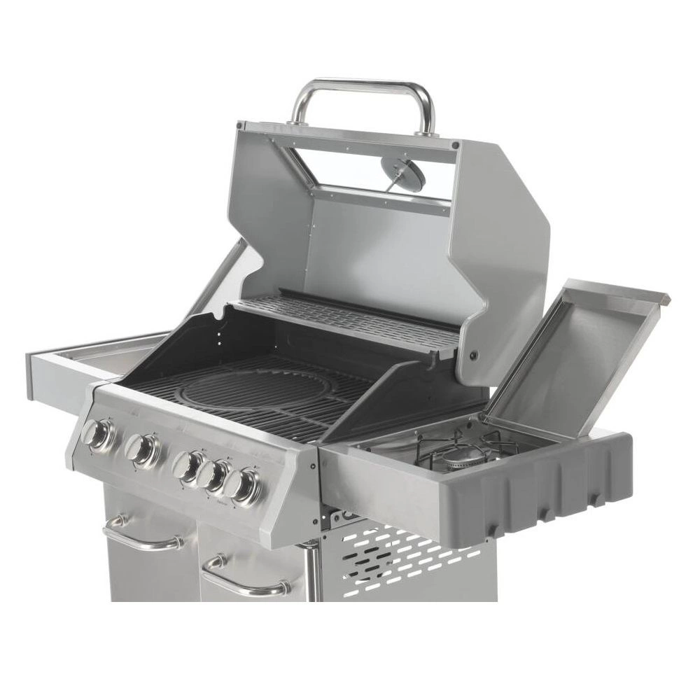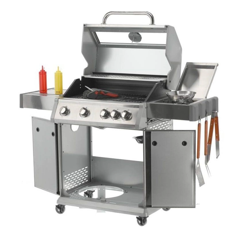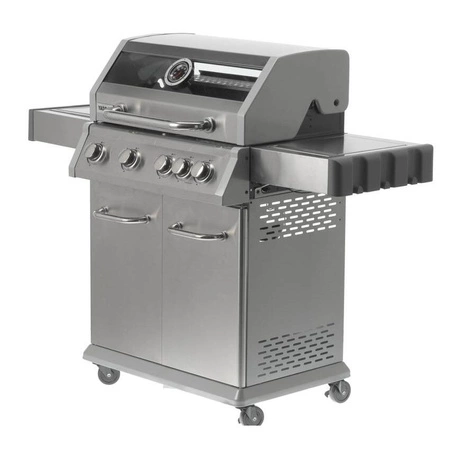 Sada 4+1 zahrnuje 4 hlavní nerezové hořáky o výkonu 3 kW každý a 1 boční hořák o výkonu 2,2 kW, umožňující vaření a ohřívání jídel v hrnci nebo na pánvi. Celkový výkon činí 14,2 kW při průměrné spotřebě plynu 1032 g/h. Průměr trysky 4x0,8 + 1x0,7 mm. Praktické grilování podtrhují boční police, prostorná skříňka, kryt hořáku (aromatizér), ocelová mísa odolná vůči vysokým teplotám a otočná kolečka s brzdou pro snadný transport. Dalšími vylepšeními je 6 háčků na bočních policích, 5 ovládacích knoflíků s modrým LED osvětlením informujícím o zapnutých hořácích, otvírák na lahve na boku grilu a možnost vysunutí odkapávací desky a jejího umytí mimo gril.