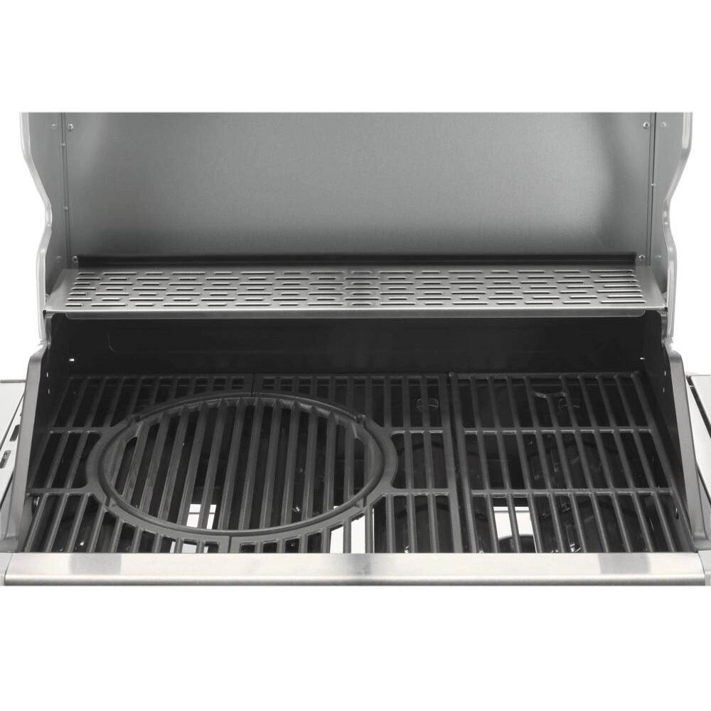 Víko s teploměrem zajišťuje rychlejší a přesnější grilování a zároveň chrání pokrmy před větrem. Okénko ve víku o tloušťce 6 mm a rozměrech 64,5x13 cm je odolné vůči vysokým teplotám a umožňuje současně sledovat stav jídel. Zapalovač umístěný v ovládacích knoflících je dalším vylepšením, které činí obsluhu grilu jednoduchou a pohodlnou. Navíc vyjímatelná nádoba na jídlo o rozměrech 26,5x32,5x9,5 cm je ideální pro skladování marinovaných pokrmů a udržuje je při správné teplotě. Ohřívací mřížka nad roštem o rozměrech 67,5x12 cm je vyrobena z nerezové oceli, což zajišťuje odolnost a snadnou údržbu.