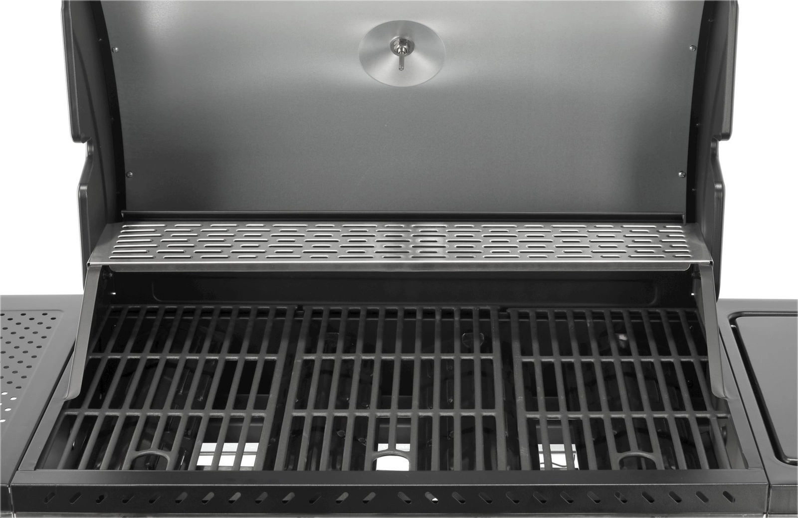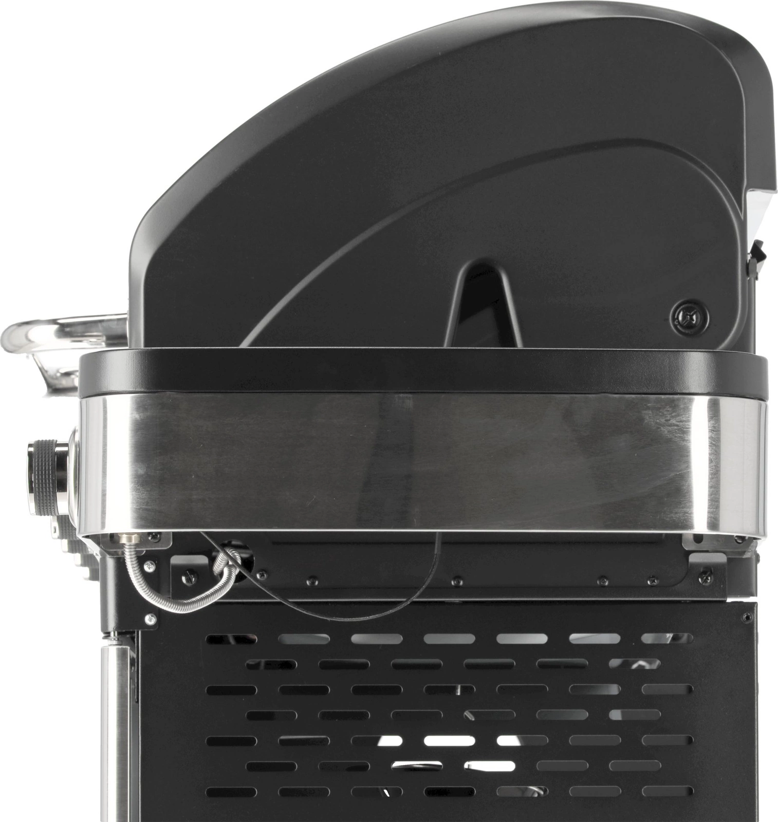 Pokrývka s teploměrem urychluje proces grilování a chrání před povětrnostními vlivy, zatímco kouř dodává jídlům chuť a aroma. Konstrukce grilu umožňuje snadné přesouvání díky čtyřem kolečkům s brzdou a možnost vysunutí odkapávací desky usnadňuje čištění.