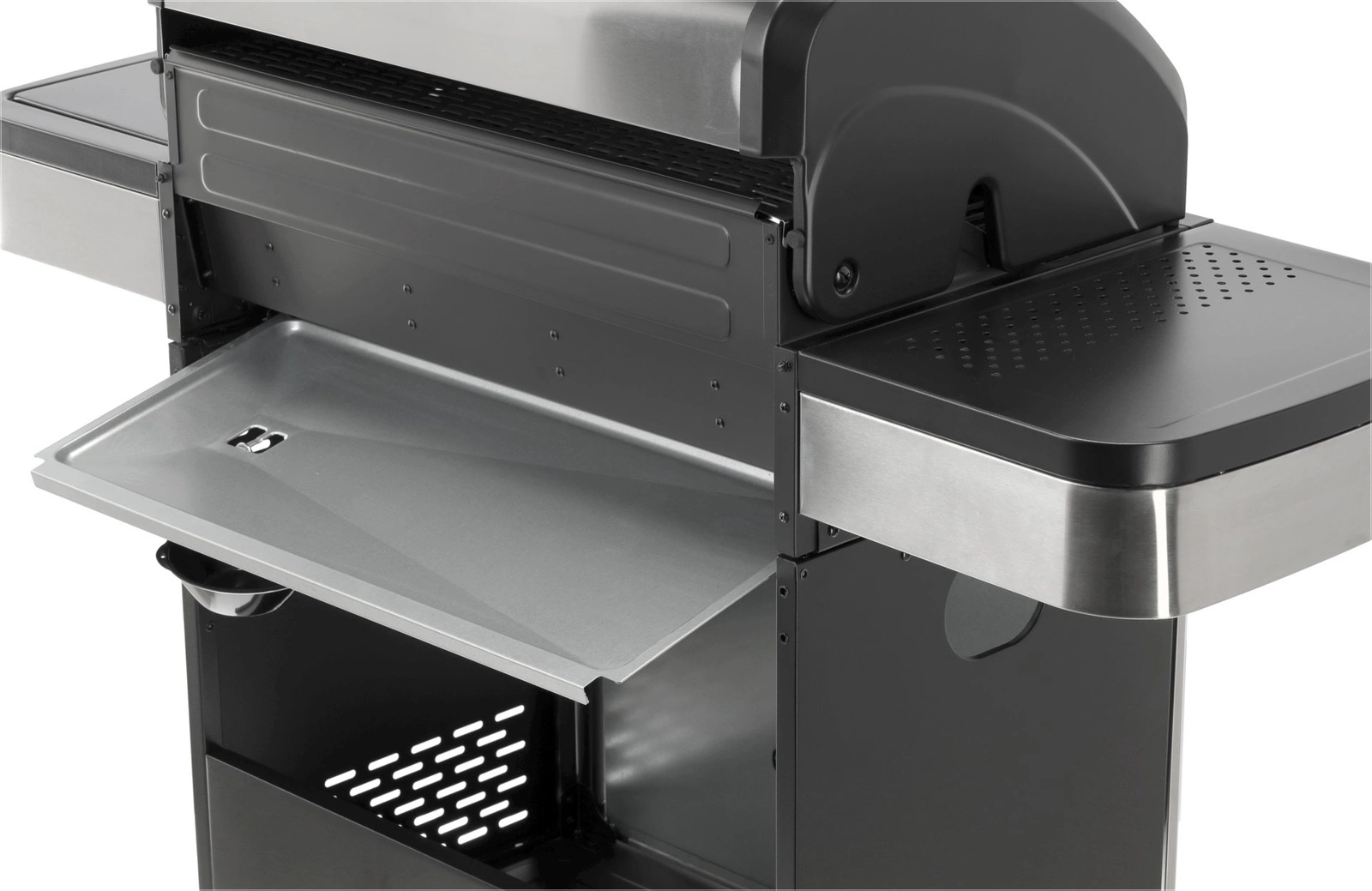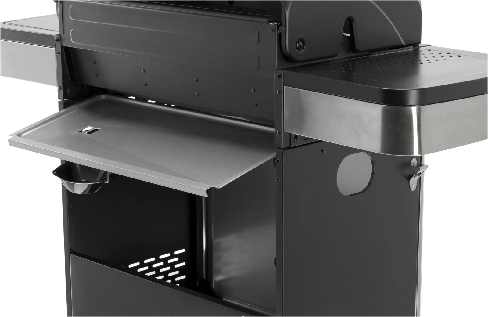 Vyniká prostornou uzavíratelnou skříňkou s místem na plynovou láhev a bočními policemi, které umožňují snadné uložení koření a příslušenství. Přídavný hořák o výkonu 2,2 kW umožňuje pohodlné vaření nebo ohřívání jídel na boku.