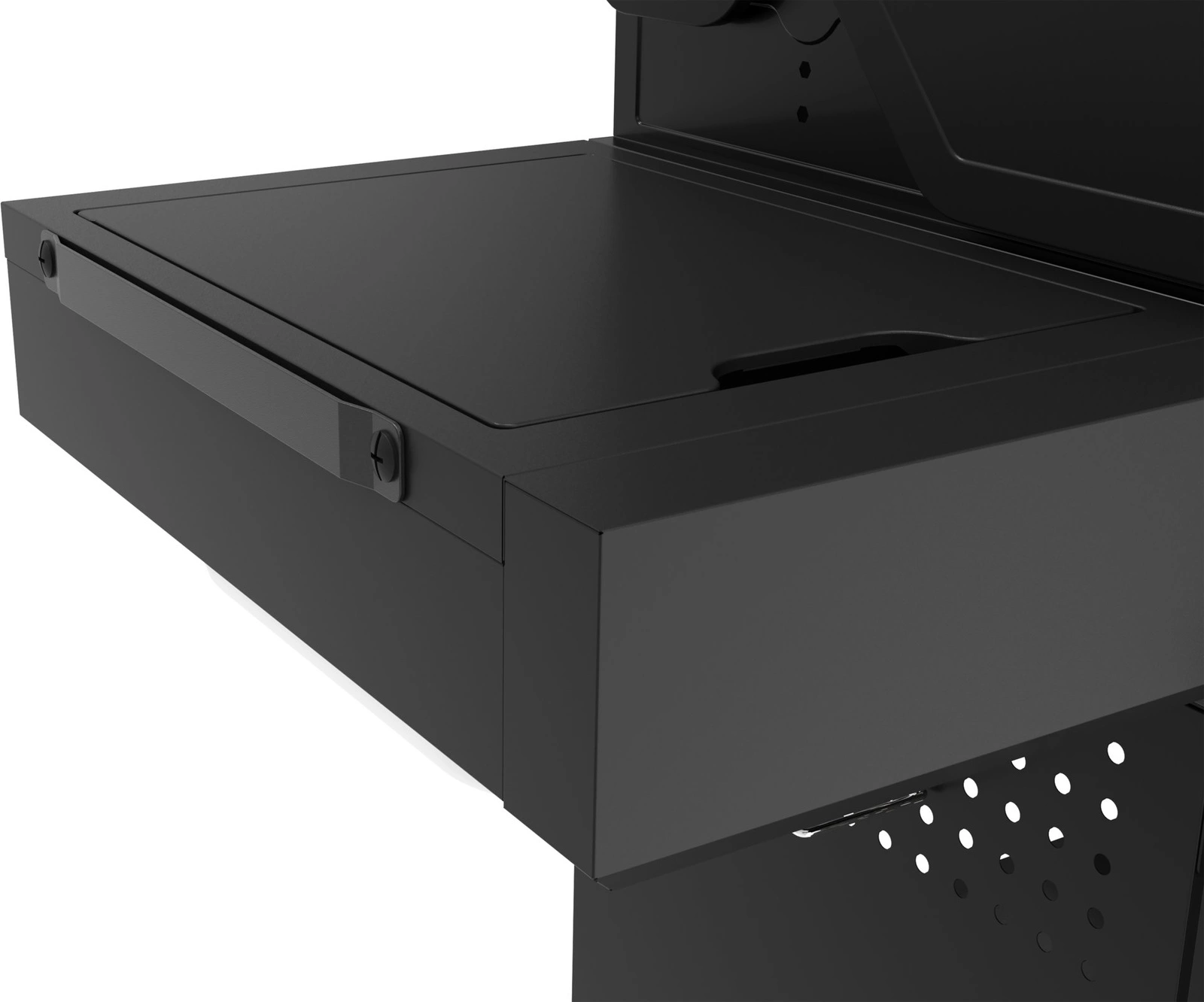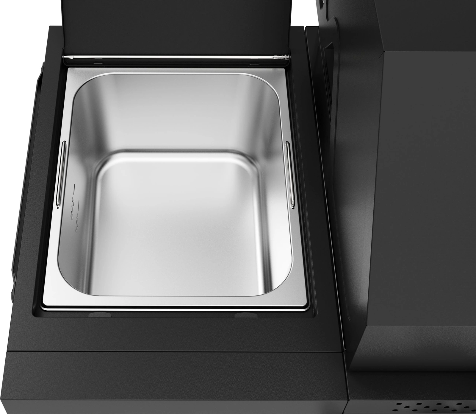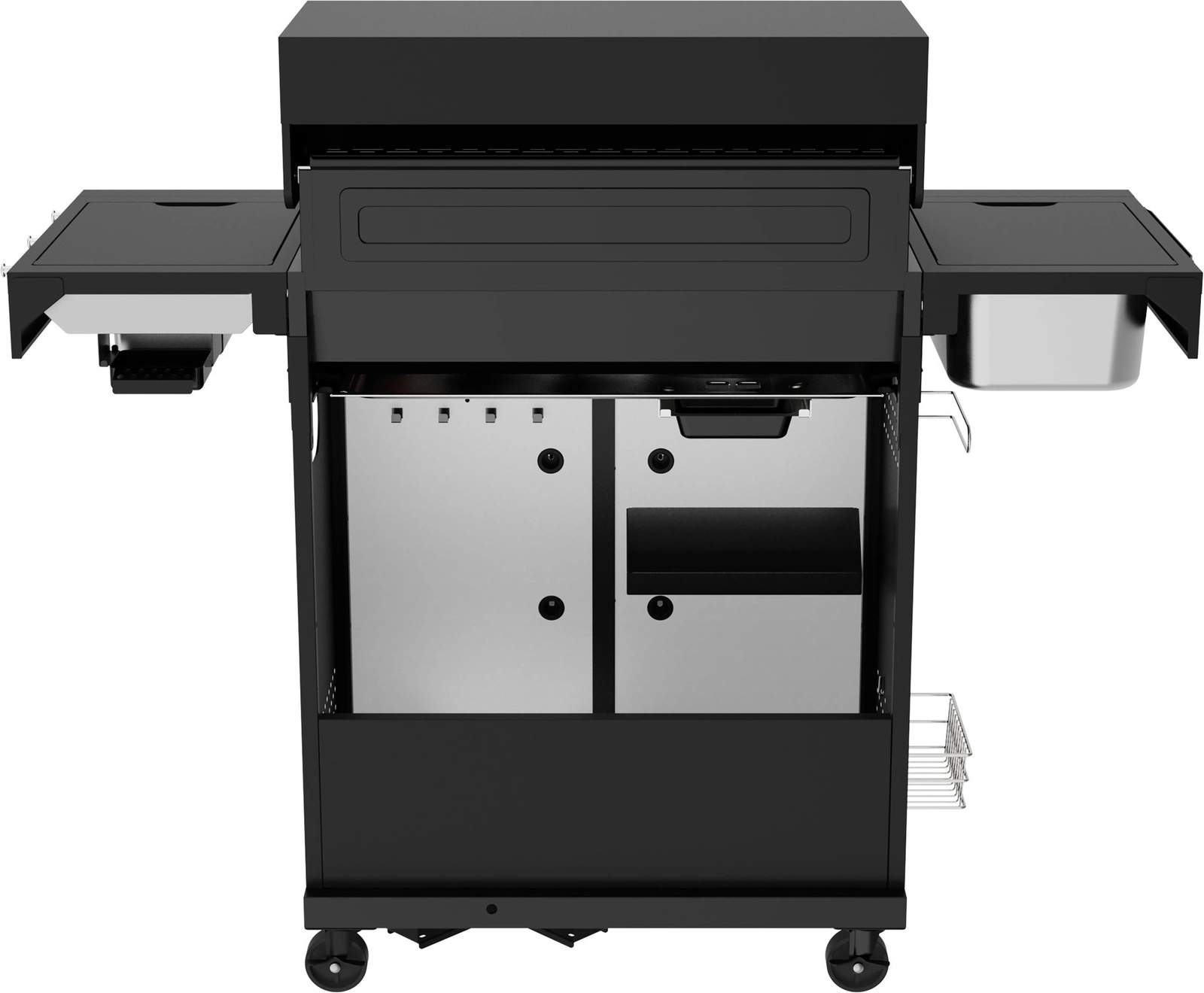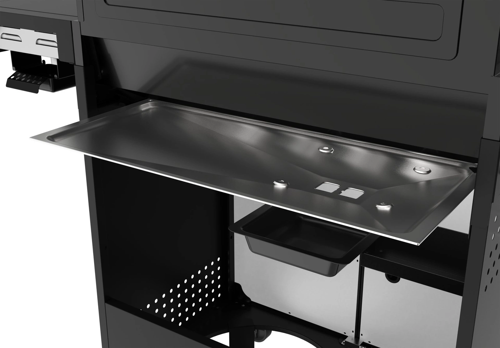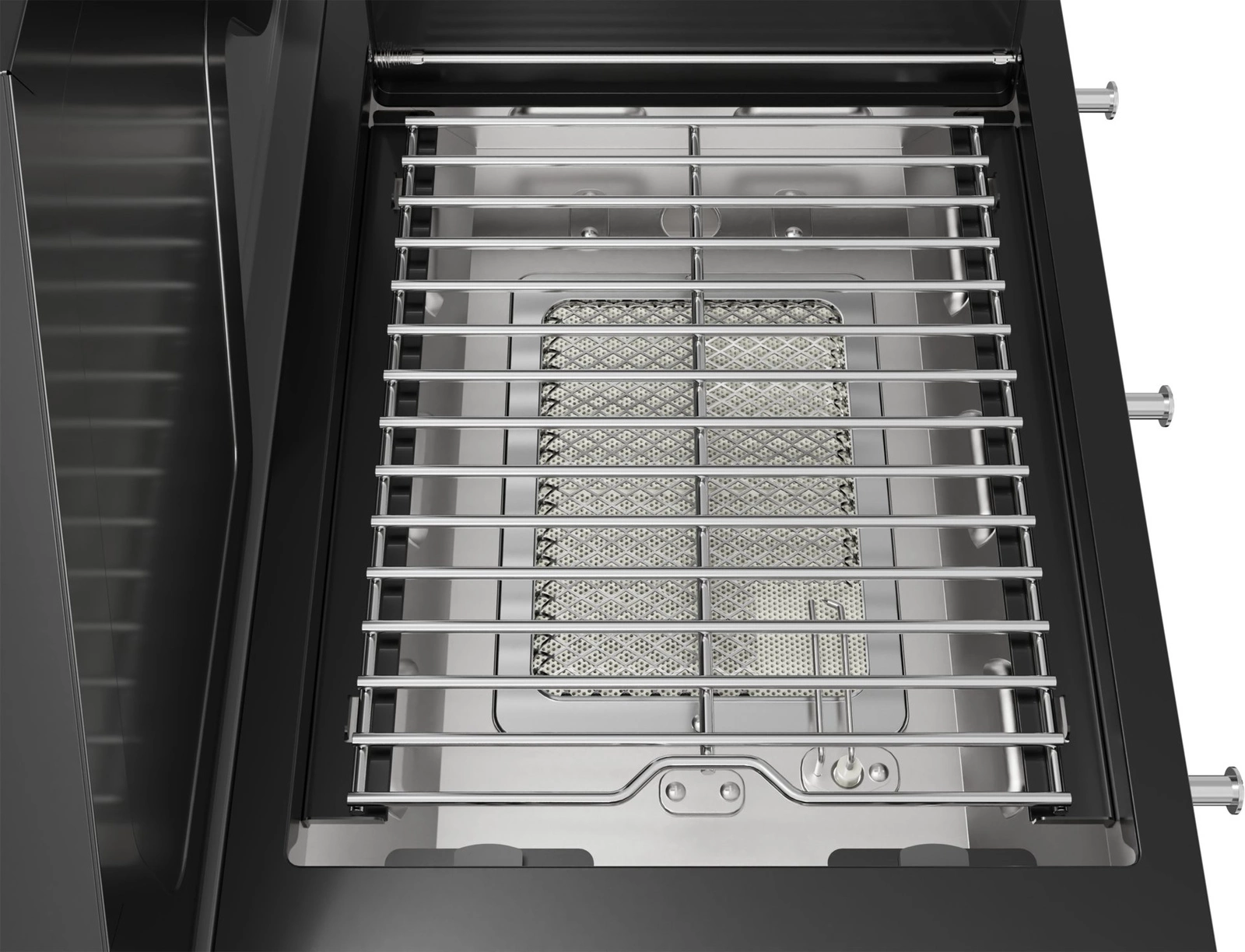 Odolné tělo z práškově lakované oceli v elegantní černé barvě zaručuje odolnost vůči povětrnostním vlivům. Tři litinové rošty o celkové ploše 700 × 420 mm se rychle zahřívají a dlouho udržují teplo. Přídavná ohřívací mřížka z nerezové oceli (677 × 120 mm) je ideální pro udržování teploty hotových jídel.