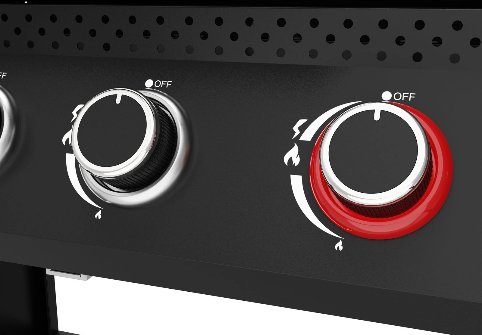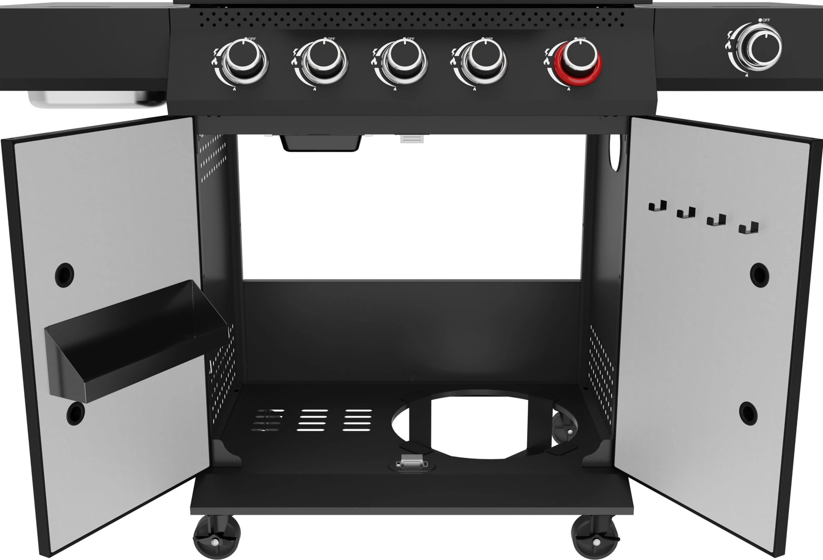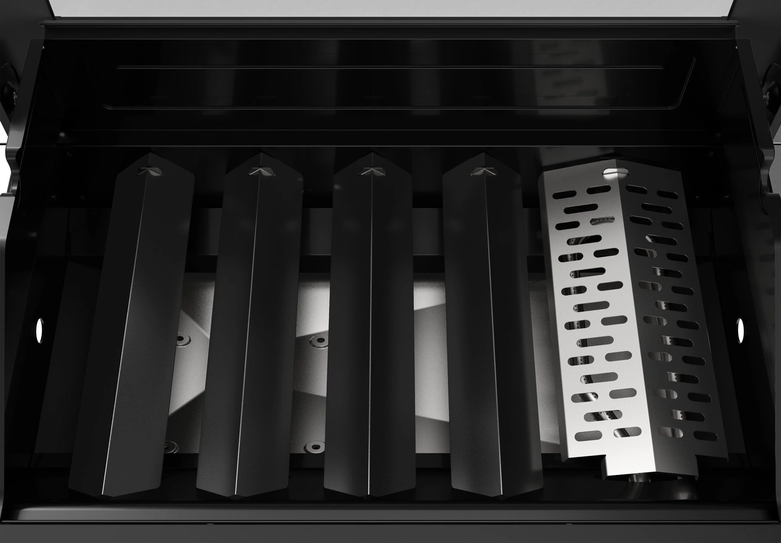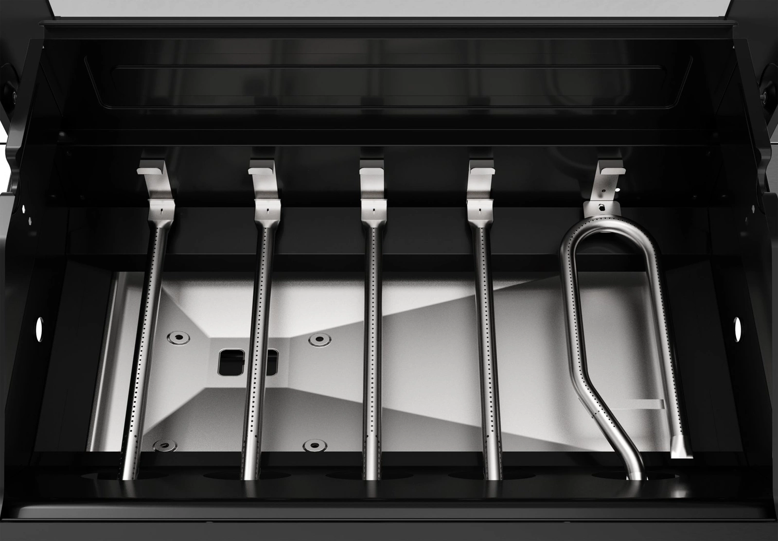 Gril má 5 hlavních hořáků (4 × 3 kW + 1 × 4 kW) a boční infračervený hořák o výkonu 3,5 kW, který dosahuje až 800°C – ideální pro rychlé opékání masa (tzv. sear). Díky automatickému zapalování v knoflících je spuštění každého hořáku rychlé a bezpečné. Dvouvrstvé víko z nerezové oceli s teploměrem umožňuje kontrolu teploty a optimální cirkulaci vzduchu, což dodává pokrmům ideální chuť a aroma.