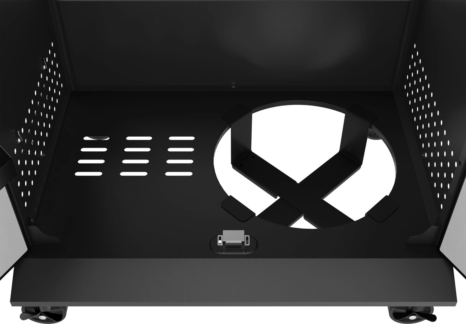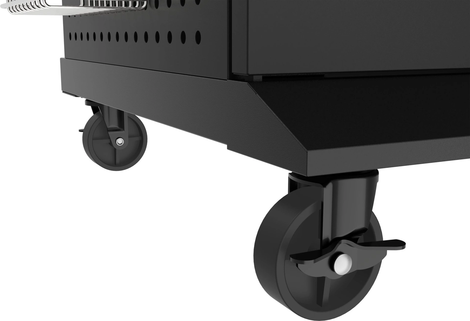 Díky čtyřem otočným kolečkům s brzdami je gril plně mobilní a snadno nastavitelný na jakémkoli povrchu.