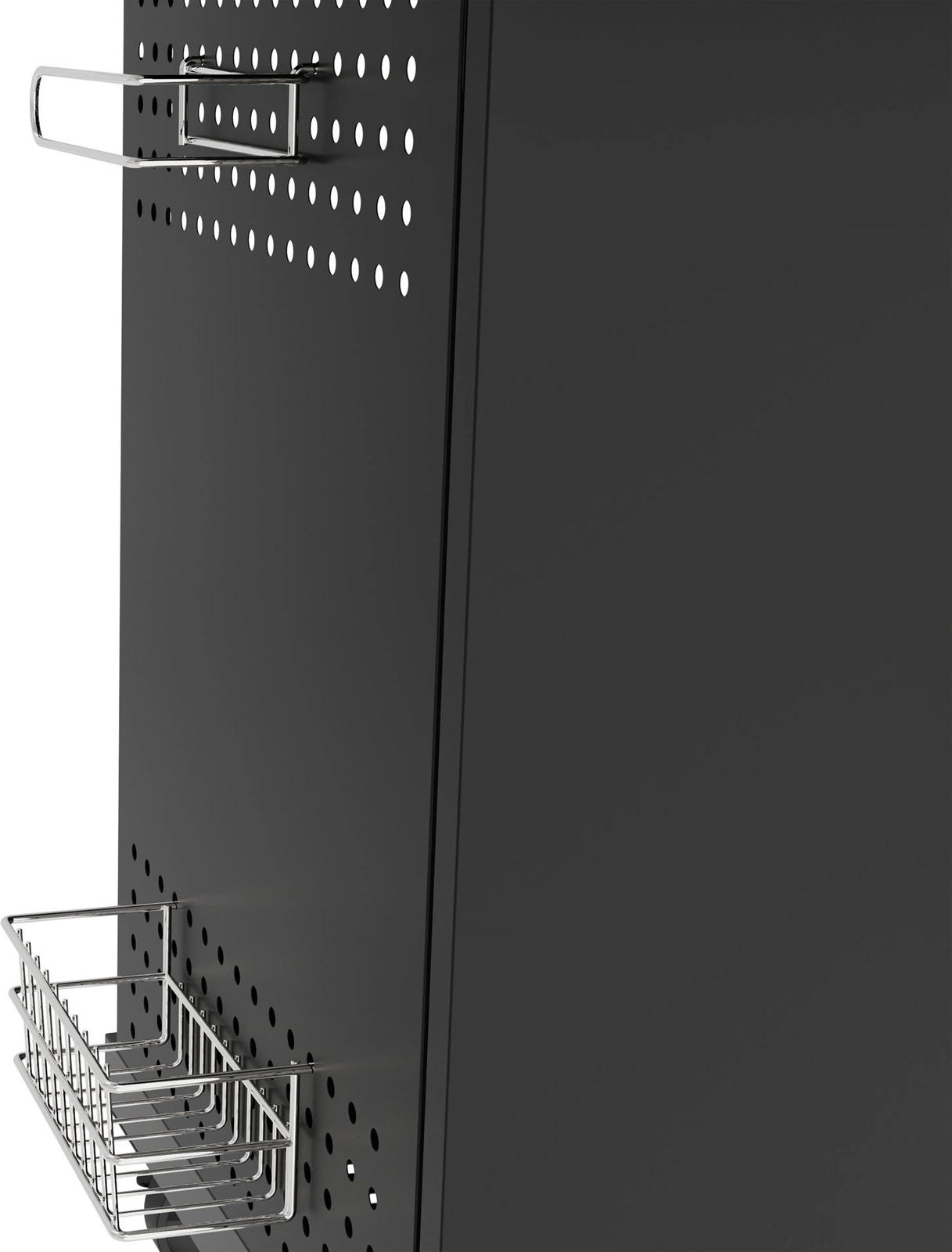 - velká spodní skříňka (700 × 455 × 555 mm) s dvouvrstvými dvířky pro uložení příslušenství,