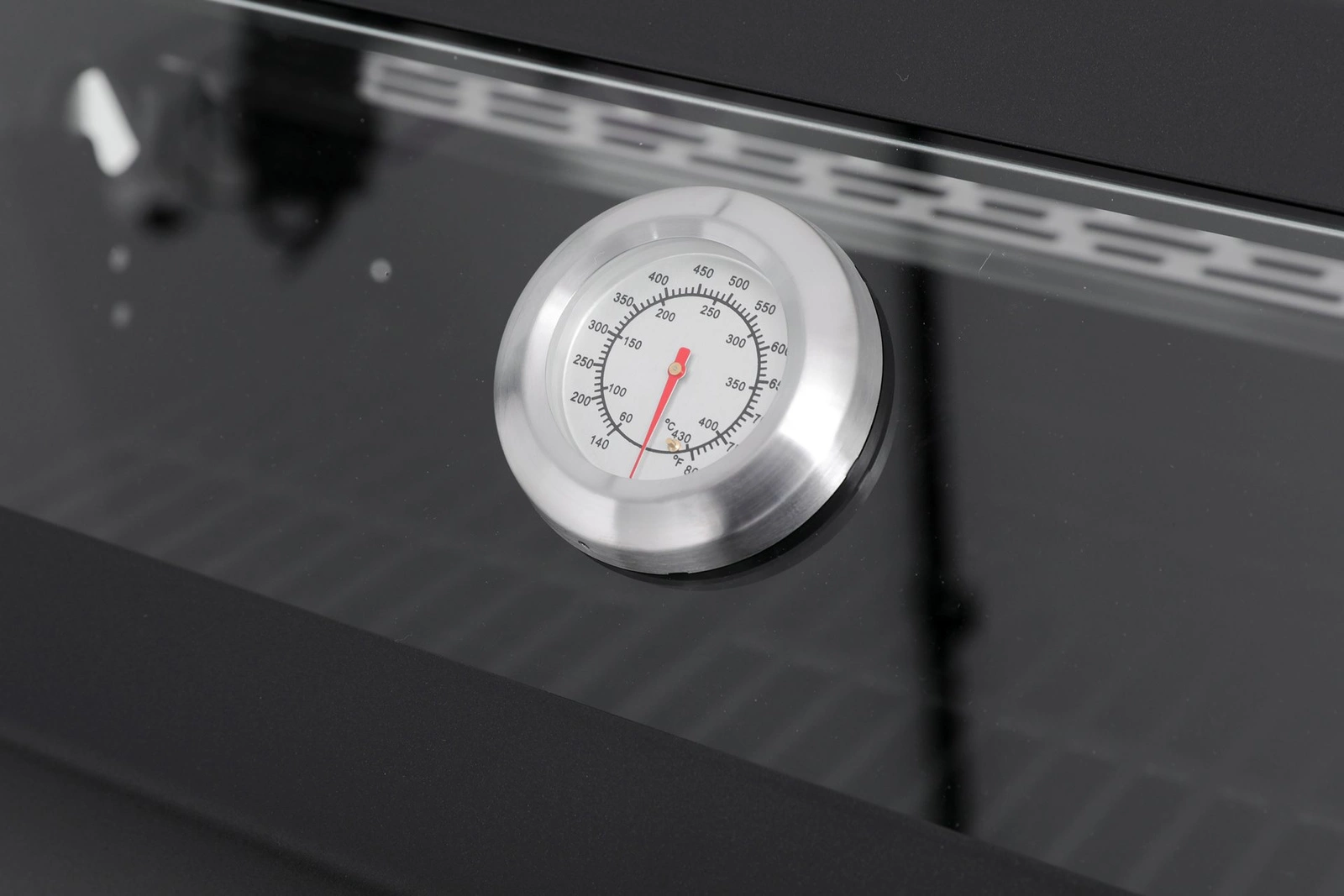 Kontrola teploty: teploměr ve víku a nezávislé ovládací knoflíky umožňují přesné nastavení teploty.