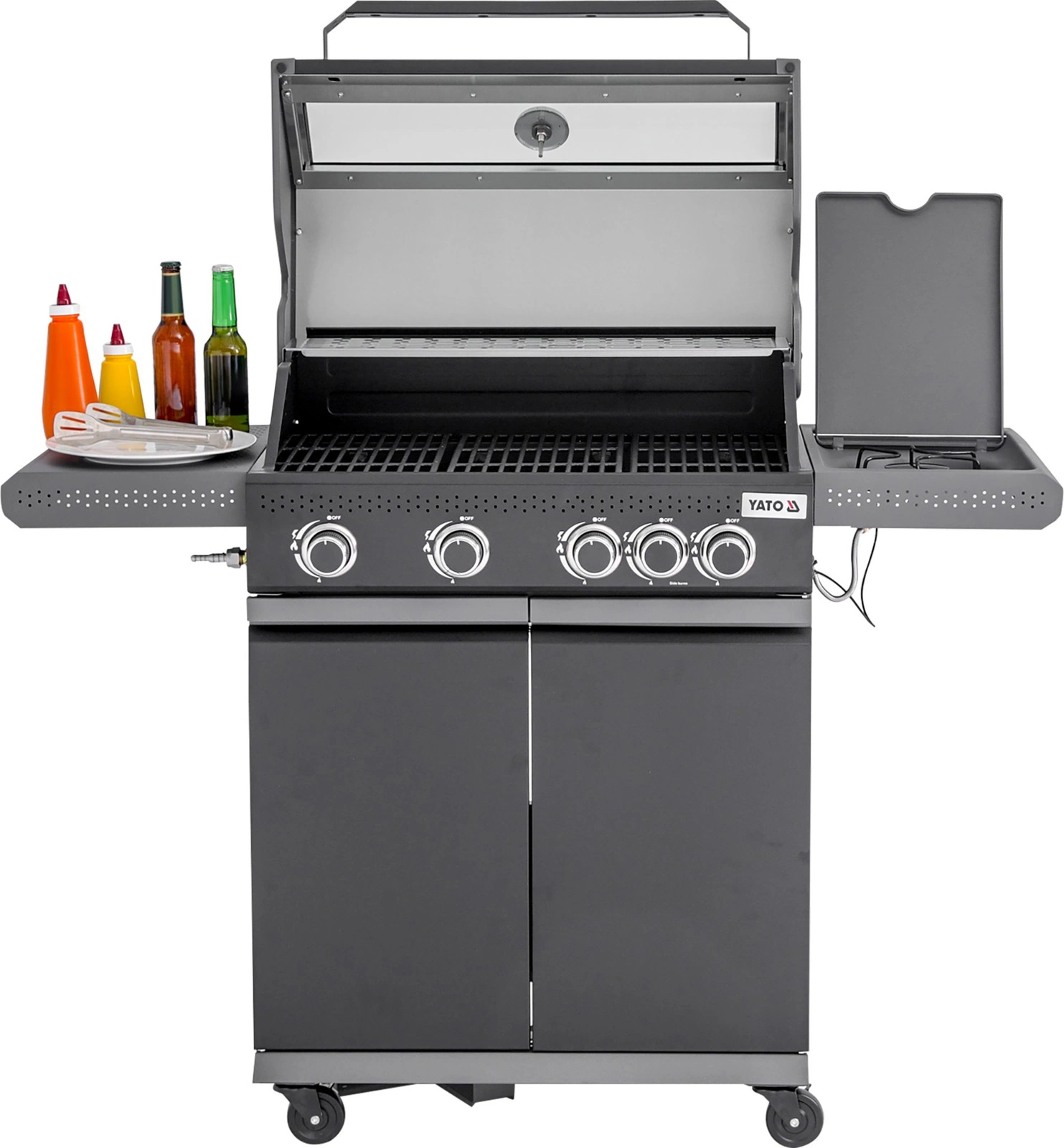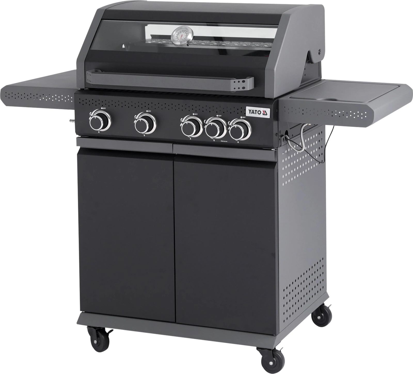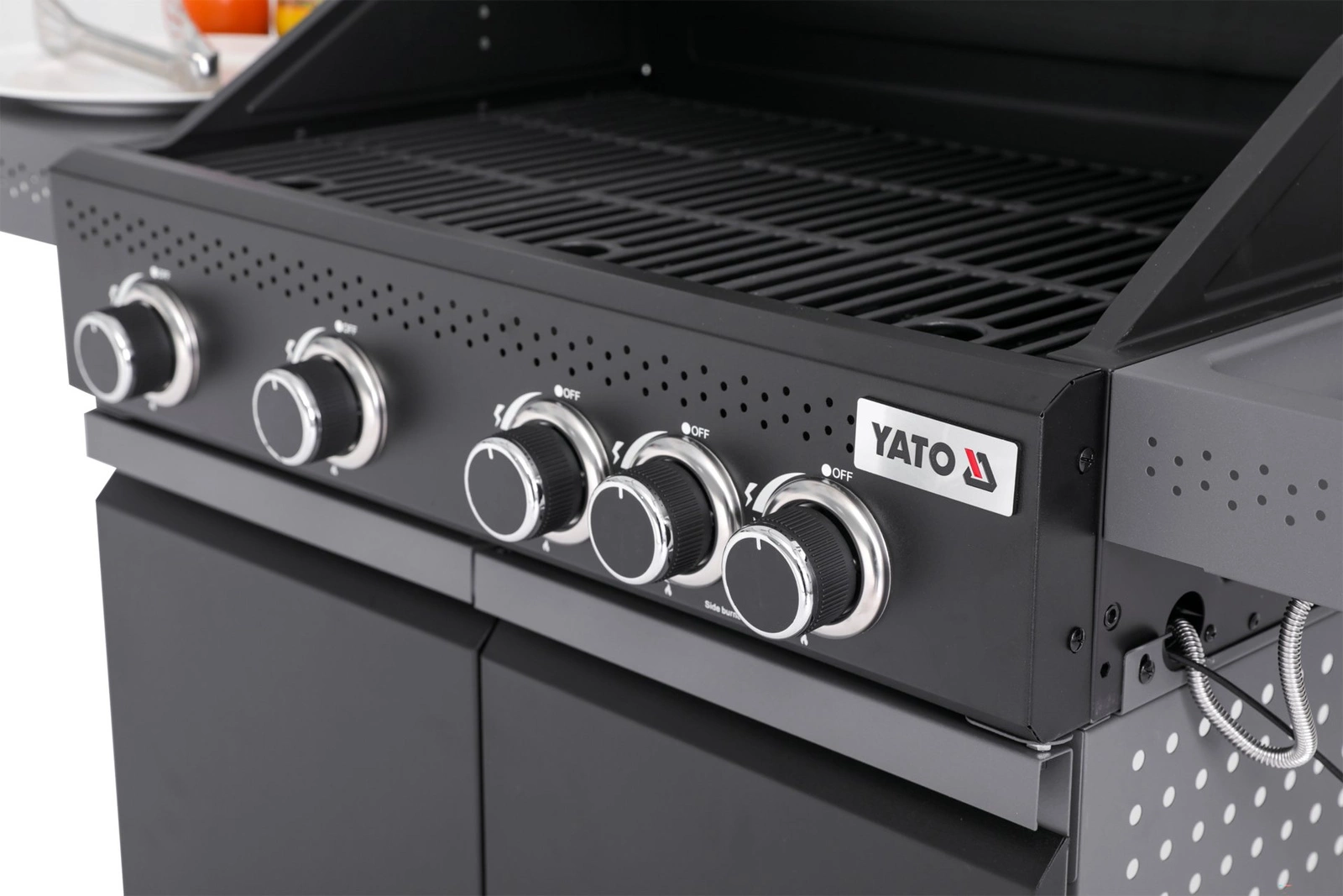 Plynový gril YATO Okaya 4+1 je elegantní a pevné zařízení, které umožňuje pohodlné a profesionální grilování. Díky vysokému výkonu, multifunkčnosti a vysoké kvalitě zpracování bude nenahraditelným prvkem vybavení každé zahrady, terasy nebo restaurace.