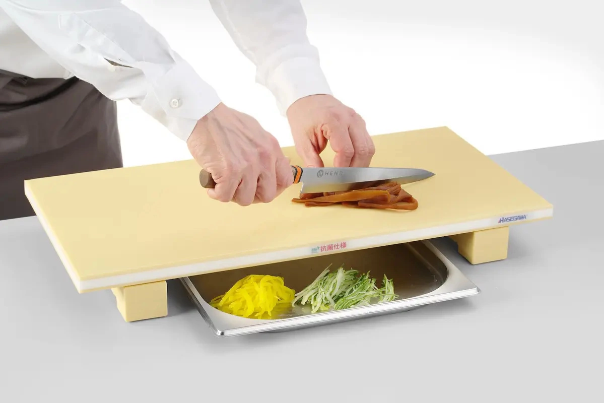 Protiskluzové prvky podložky – vyrobené z elastomeru, zabraňují posouvání podložky během práce. Antibakteriální vlastnosti – pomáhají udržovat hygienu na pracovišti. Možnost sbírání nakrájených ingrediencí – prostor pod podložkou umožňuje pohodlné umístění nádoby na ingredience. Snadné čištění – lze mýt v myčce, což usnadňuje udržování čistoty. Podložka pod sushi desku Hasegawa je ideálním řešením pro profesionální sushi mistry a restaurace, které si cení funkčnosti, hygieny a nejvyššího komfortu práce.