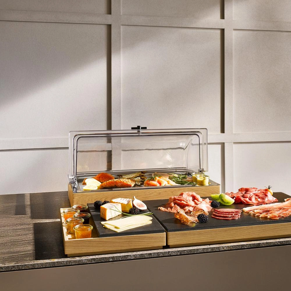 - Univerzální použití – Pasuje na nádoby a tácy GN 1/1, a proto najde využití jak v restauracích, hotelech, tak i při cateringových akcích.