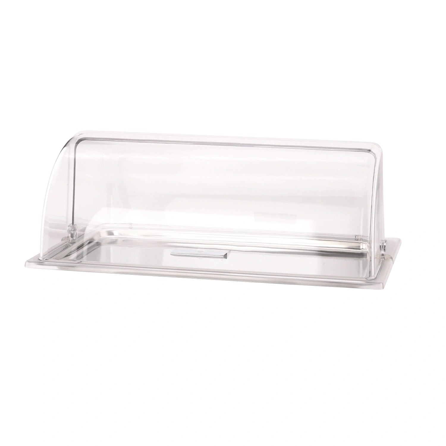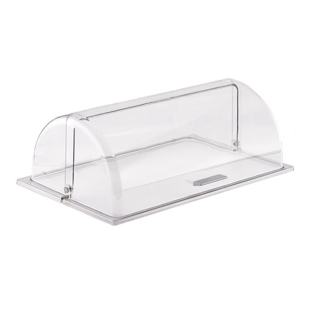 Poklice GN 1/1 Roll-top APS 11018 byla navržena s ohledem na intenzivní používání v gastronomii. Roll-top umožňuje snadné používání nádoby i během servisu – víko se plynule posouvá a není nutné jej zcela sundávat. Průhledný plast je odolný proti poškrábání a zinkové díly zvyšují pevnost celé konstrukce. Poklice je vhodná jak pro prezentaci pokrmů na bufetu, tak i pro skladování hotových jídel.