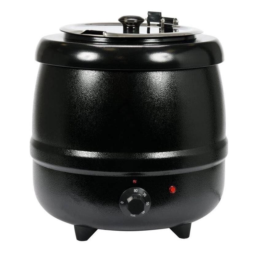 Nastavitelný výkon ohřívače (400 W) a přesný termostat umožňují plynulou regulaci teploty v rozmezí 35 ~ 85 °C. Kotel je vybaven víkem s otvorem pro naběračku a při nalévání polévky lze víko nastavit do otevřené polohy, čímž se zabrání vylití kondenzovaných par ven. Stabilitu přístroje zaručují čtyři namontované nócky.