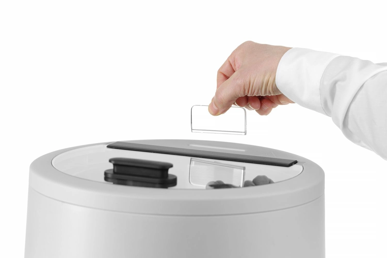 Díky izolované rukojeti, výřezu na naběračku a hliníkovému závěsu je víko z tvrzeného skla mimořádně funkční a praktické. Jeho speciální dvoudílná konstrukce minimalizuje tepelné ztráty při otevírání a udržuje hygienu na nejvyšší úrovni. Víko je navíc navrženo tak, aby zkondenzované páry byly odváděny zpět do nádoby, což pomáhá udržovat vlhkost potravin.